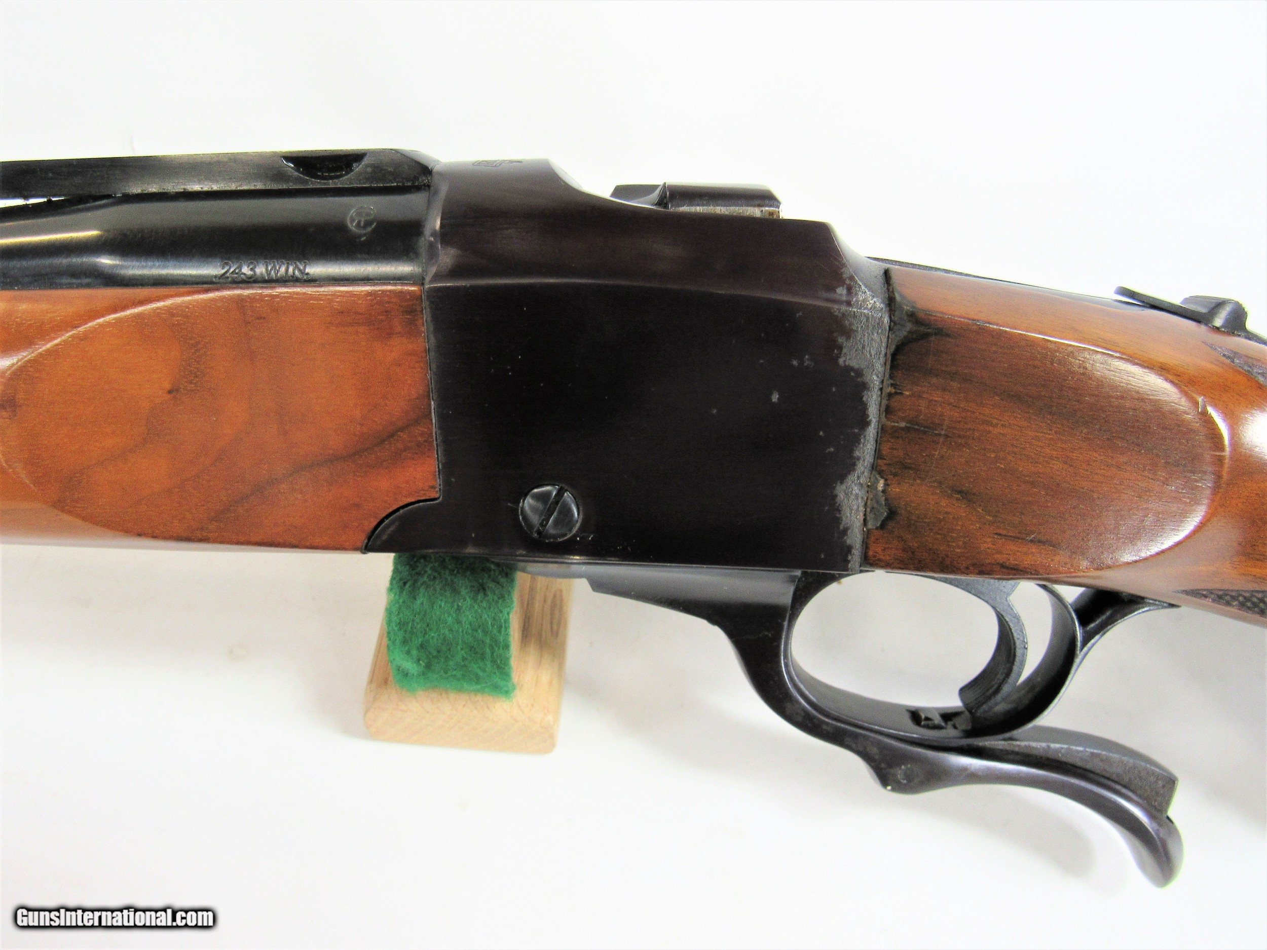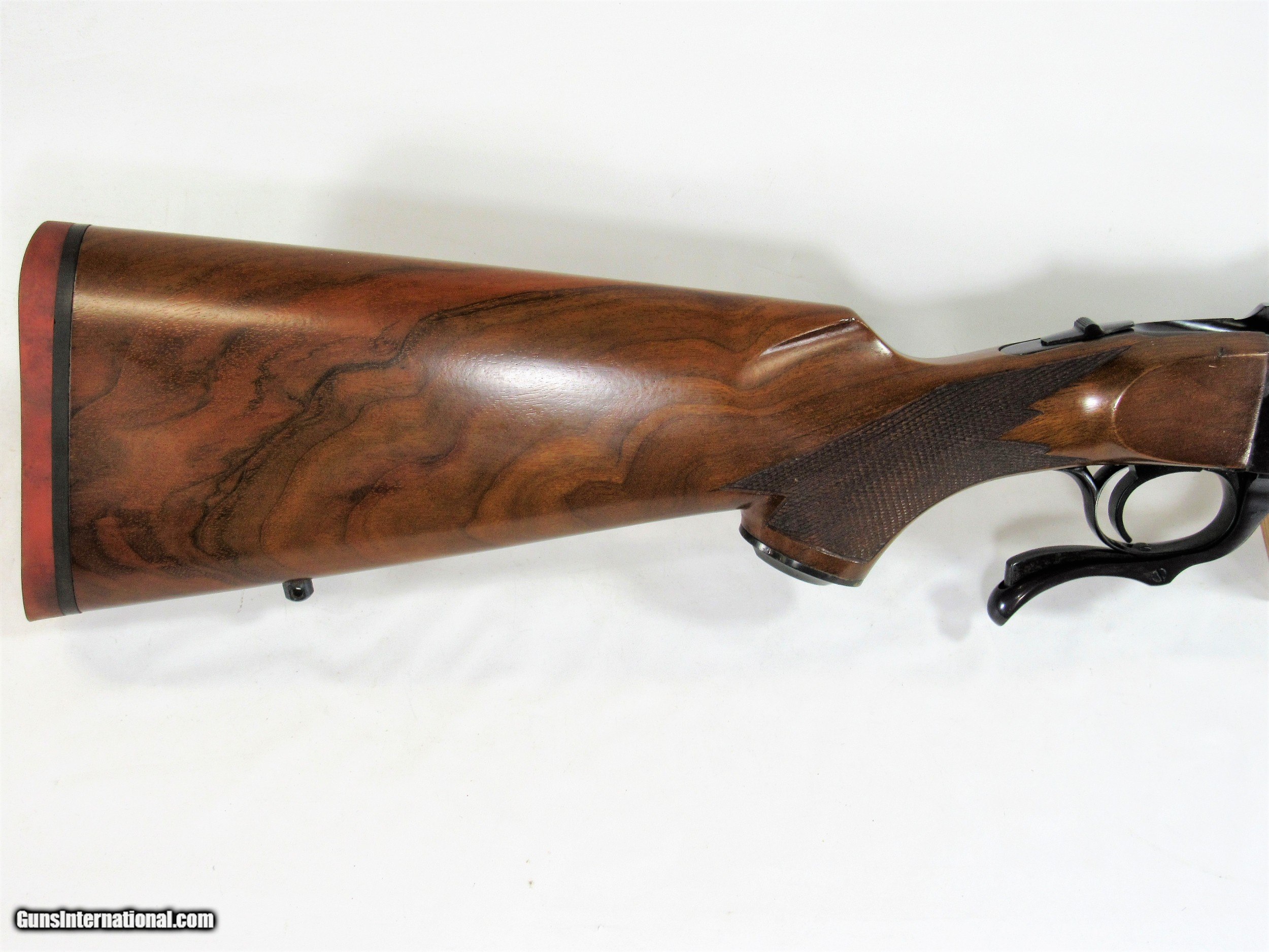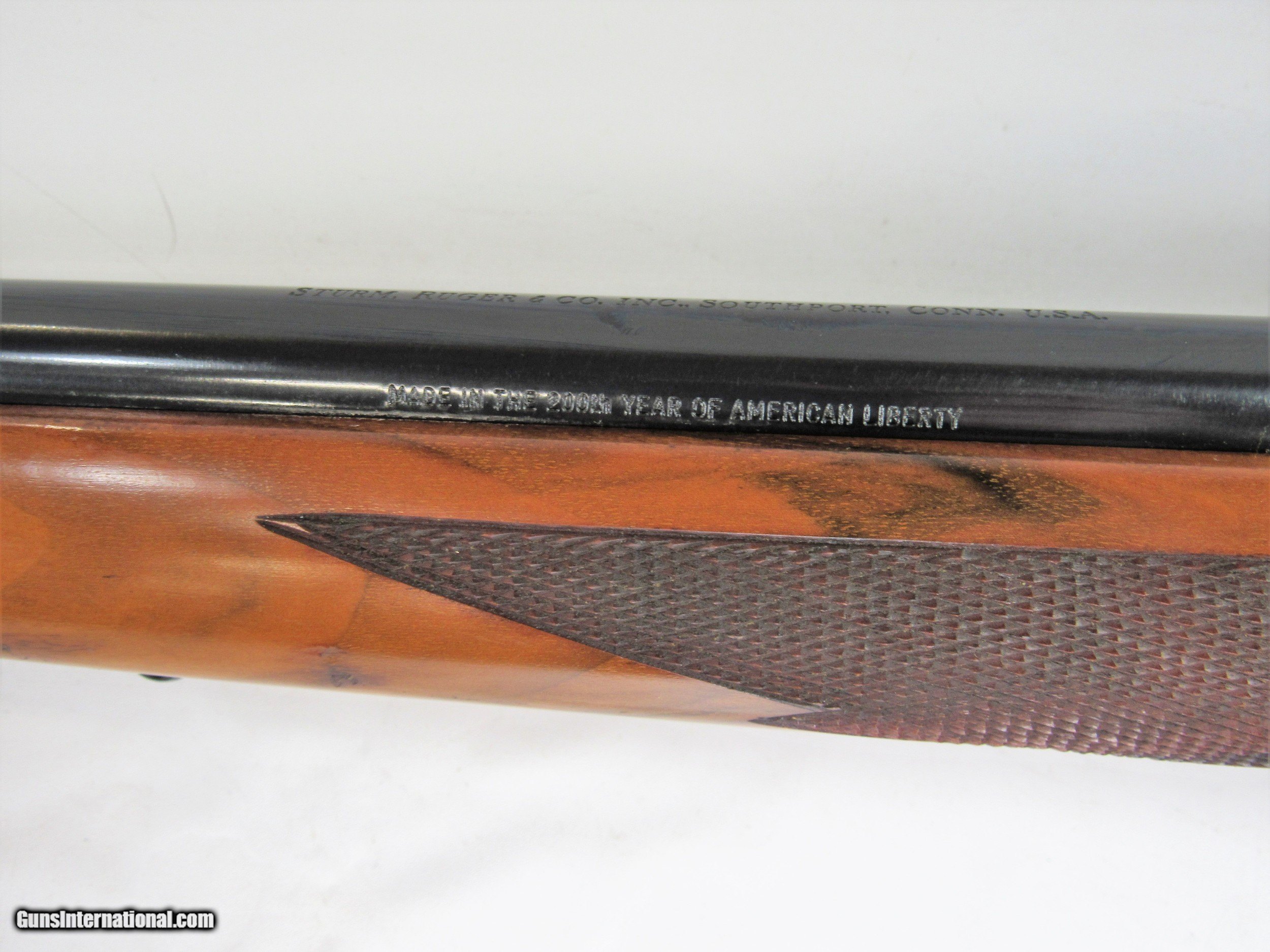 Description: RUGER #1 243 26”. 200TH YEAR OF AMERICAN LIBERTY. 97% BLUE WITH SOME PITTING ON THE BACK EDGE OF THE RECEIVER. EXCELLENT BORE. NICE WOOD WITH NICE FIGURE. SOLD Rifle Caliber: .243 Winchester |