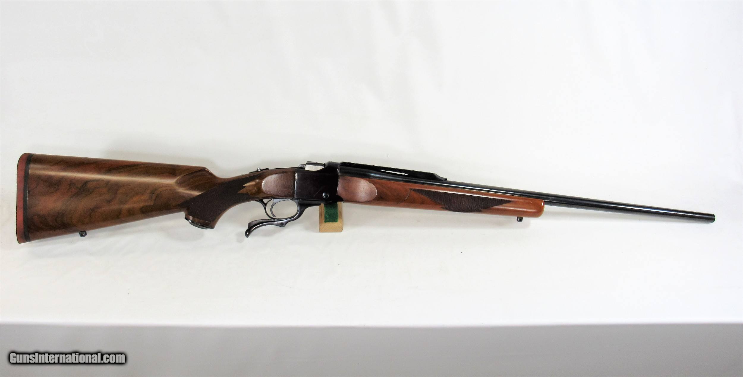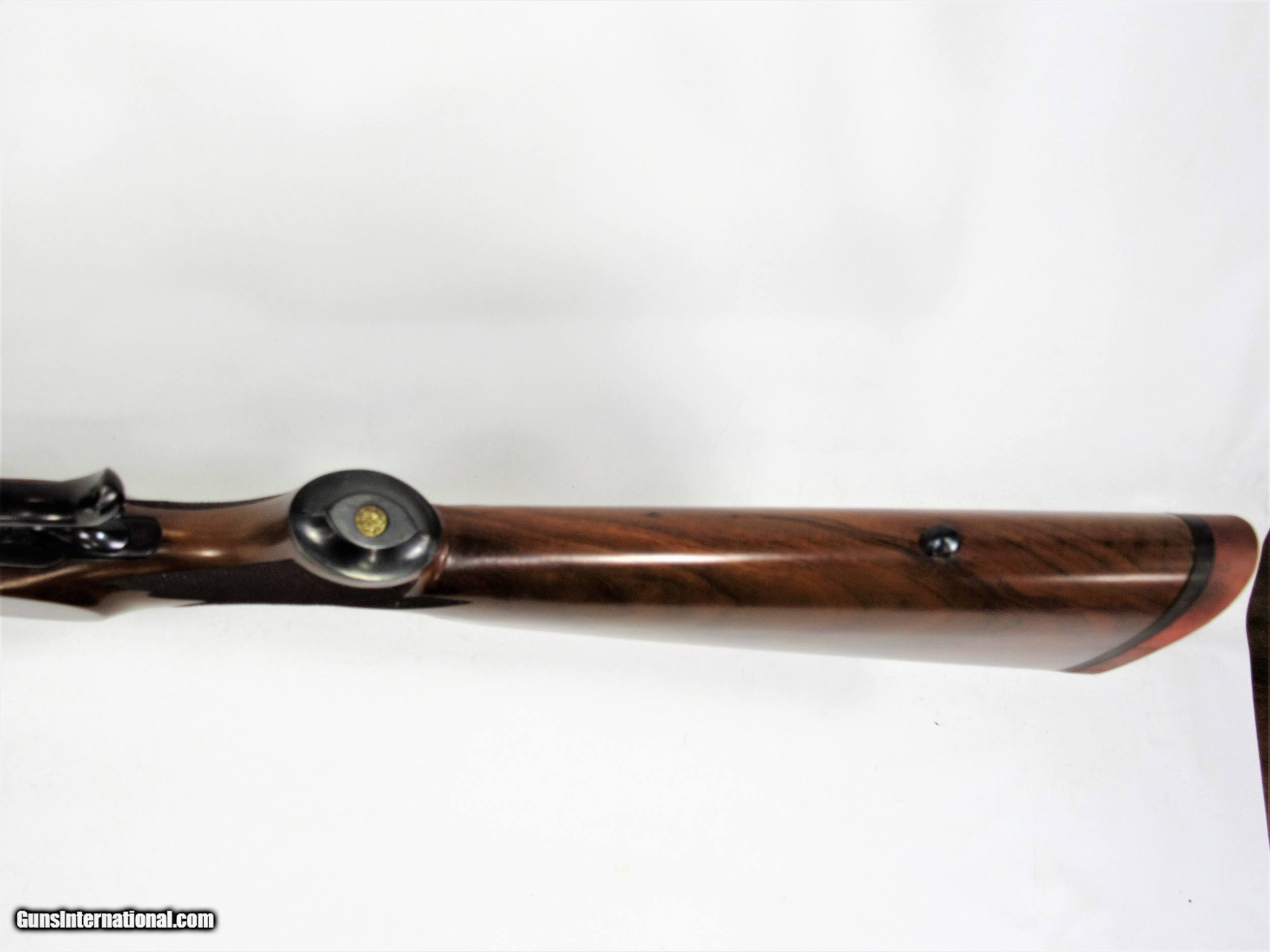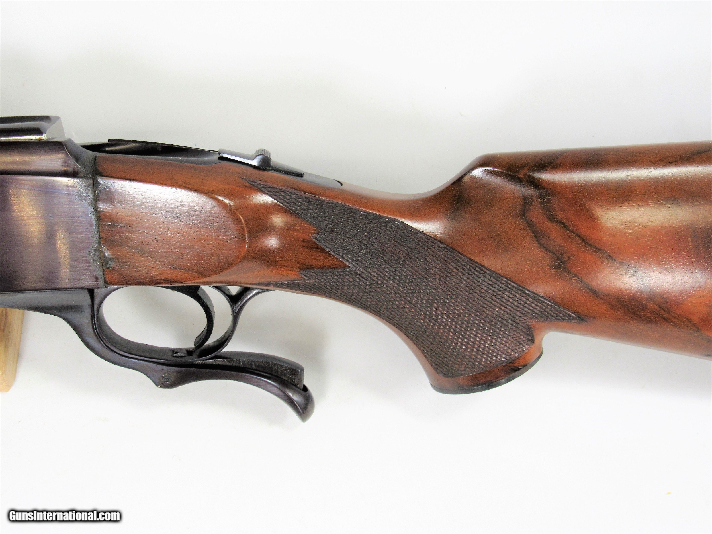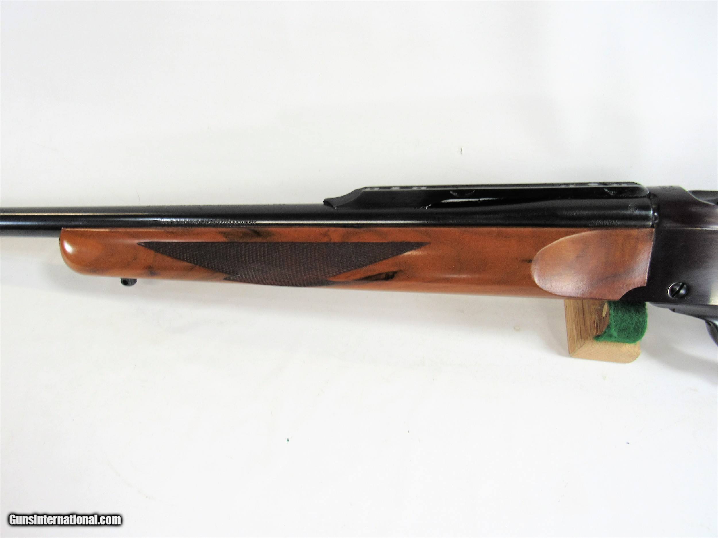 Description: RUGER #1 243 26”. 200TH YEAR OF AMERICAN LIBERTY. 97% BLUE WITH SOME PITTING ON THE BACK EDGE OF THE RECEIVER. EXCELLENT BORE. NICE WOOD WITH NICE FIGURE. SOLD Rifle Caliber: .243 Winchester |