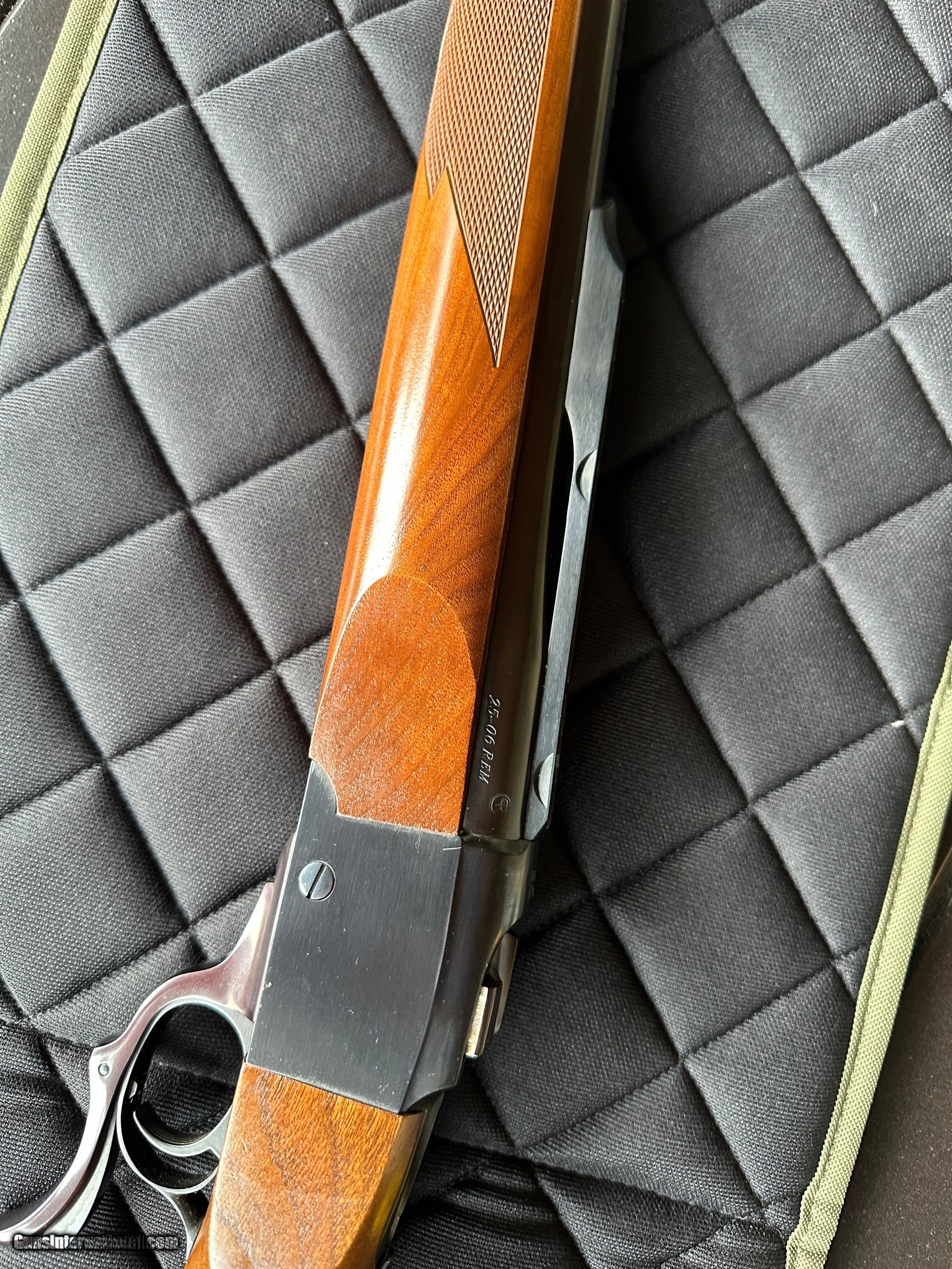 Description: I'm selling my Ruger number one in 25-06. The rifle has been fired very little and is in outstanding condition. No major marks on the wood or the metal. Rifle comes as shown. Unfortunately I don't have the rings. it has a 26 inch barrel I do not do face-to-face transfers I do not ship to Alaska or Hawaii SOLD Rifle Caliber: .25-06 Remington Manufacturer: Ruger Model: 1 Serial Number: 133- Barrel Length: 26 Condition: Outstanding |