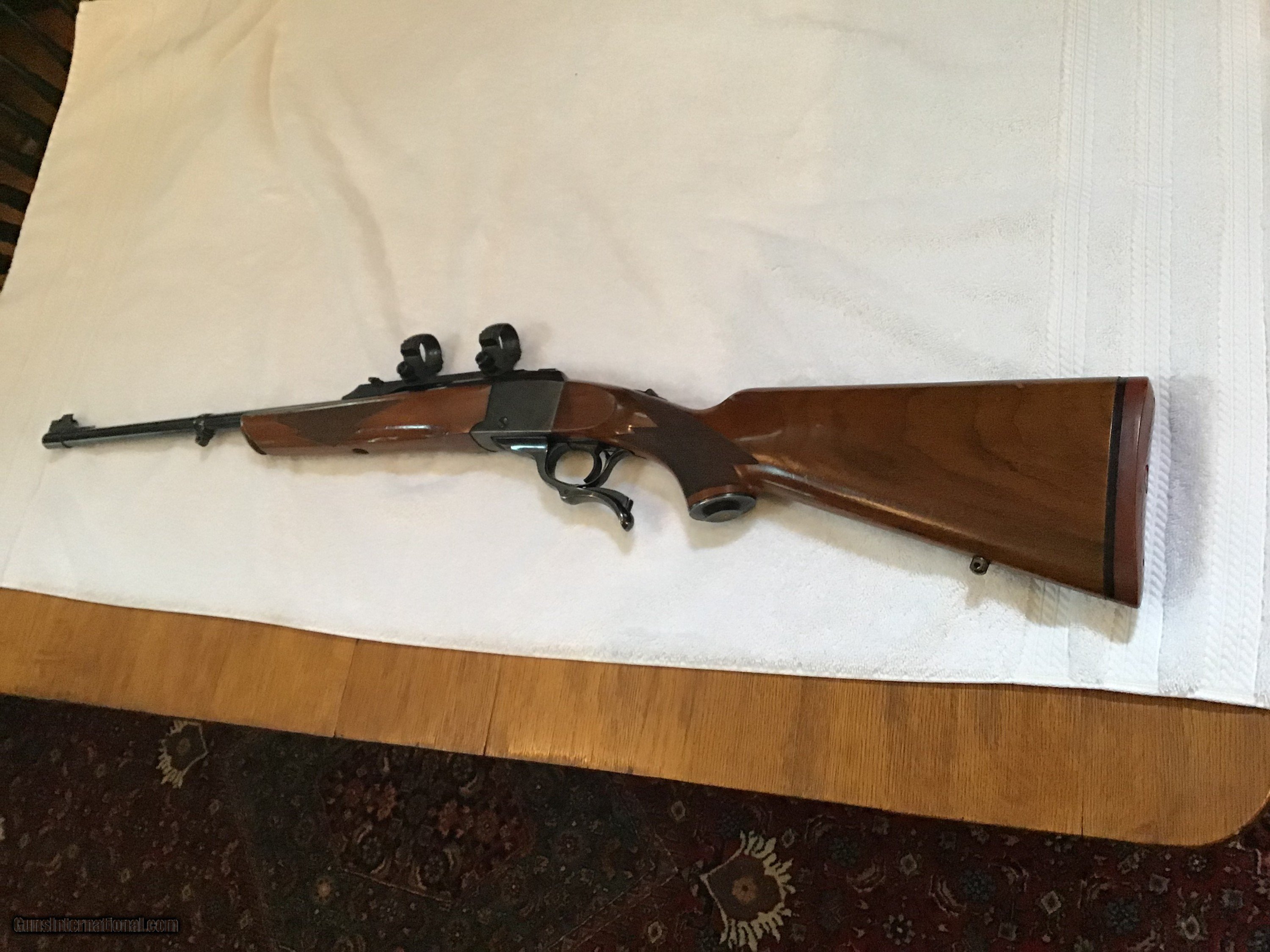 Description: Ruger #1 in 7 x 57 Mauser . 22” sporter barrel , very good metal , few handling marks on wood . very accurate, with 1” Ruger rings . #131524xx . Nice clean trigger pull . $1050.00 shipped to 48 where legal thanks for looking SOLD |