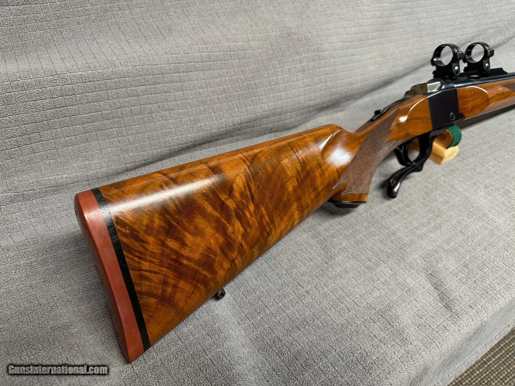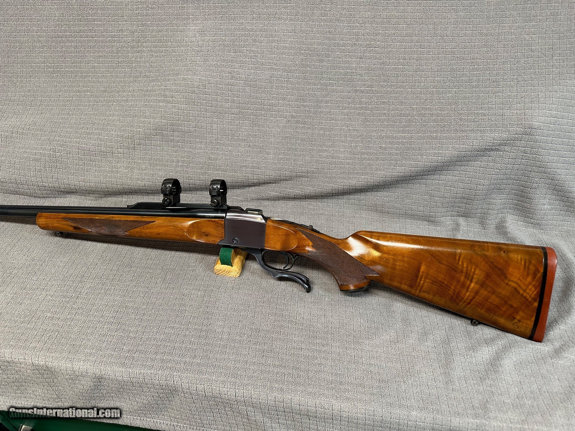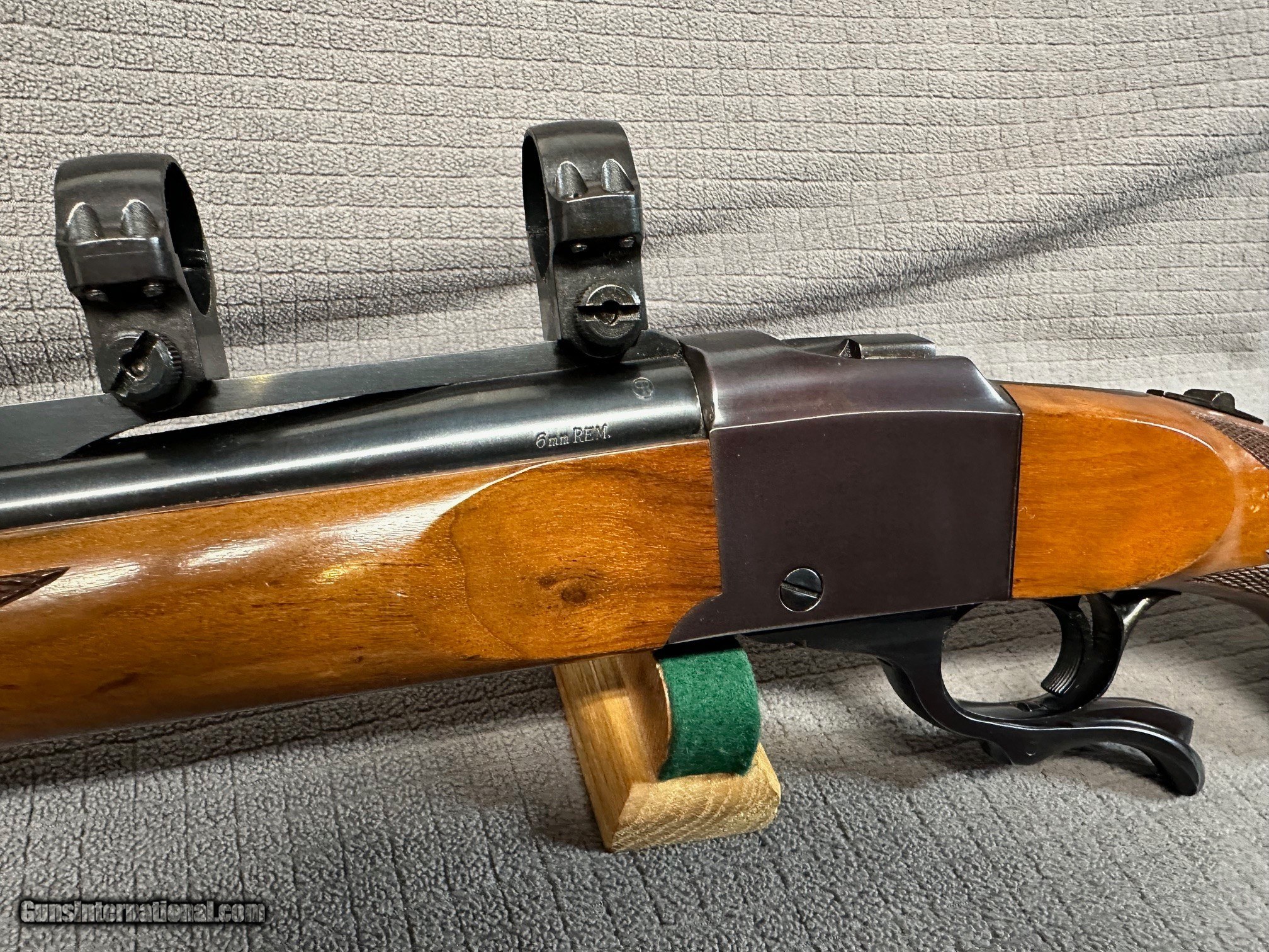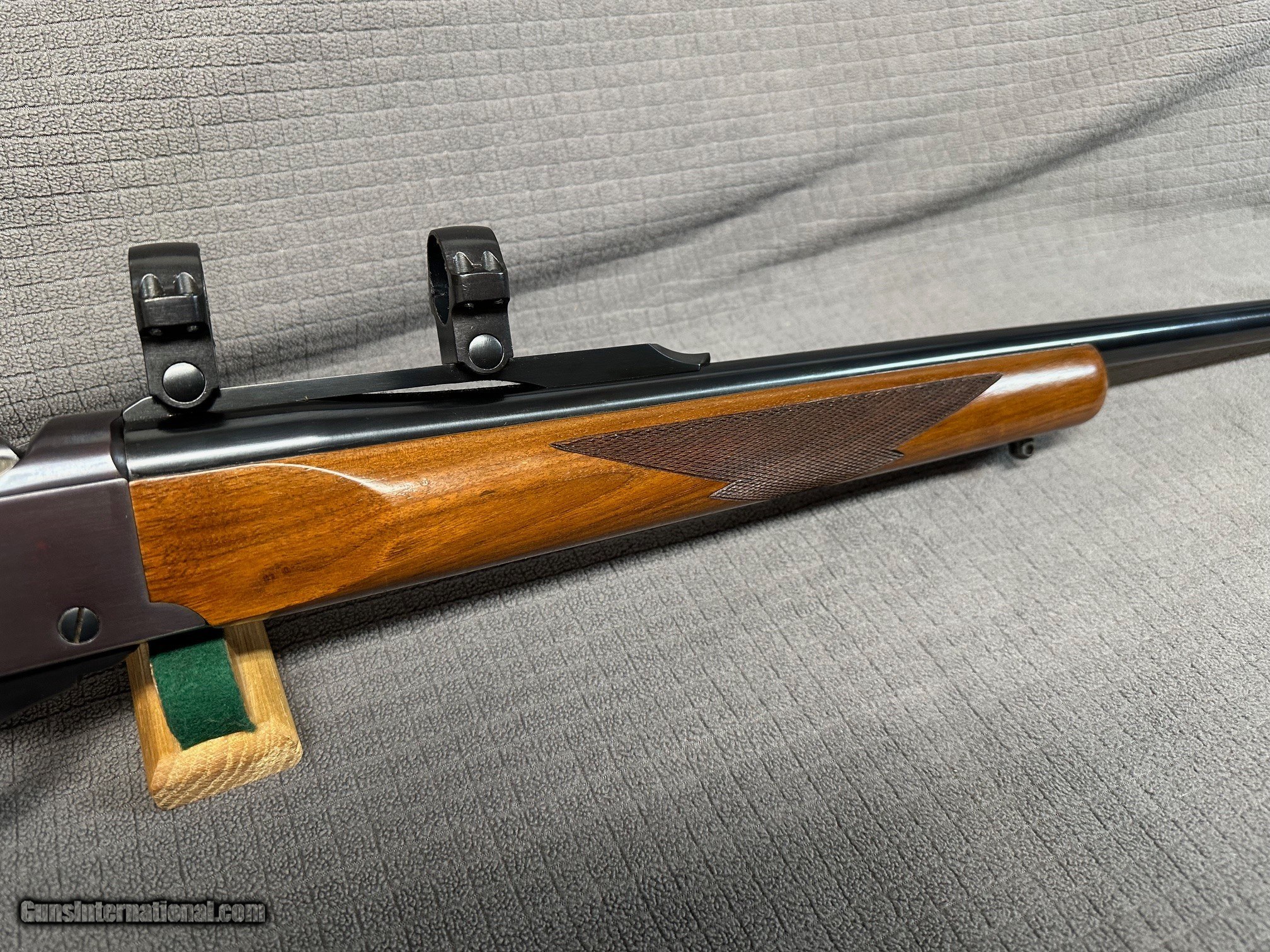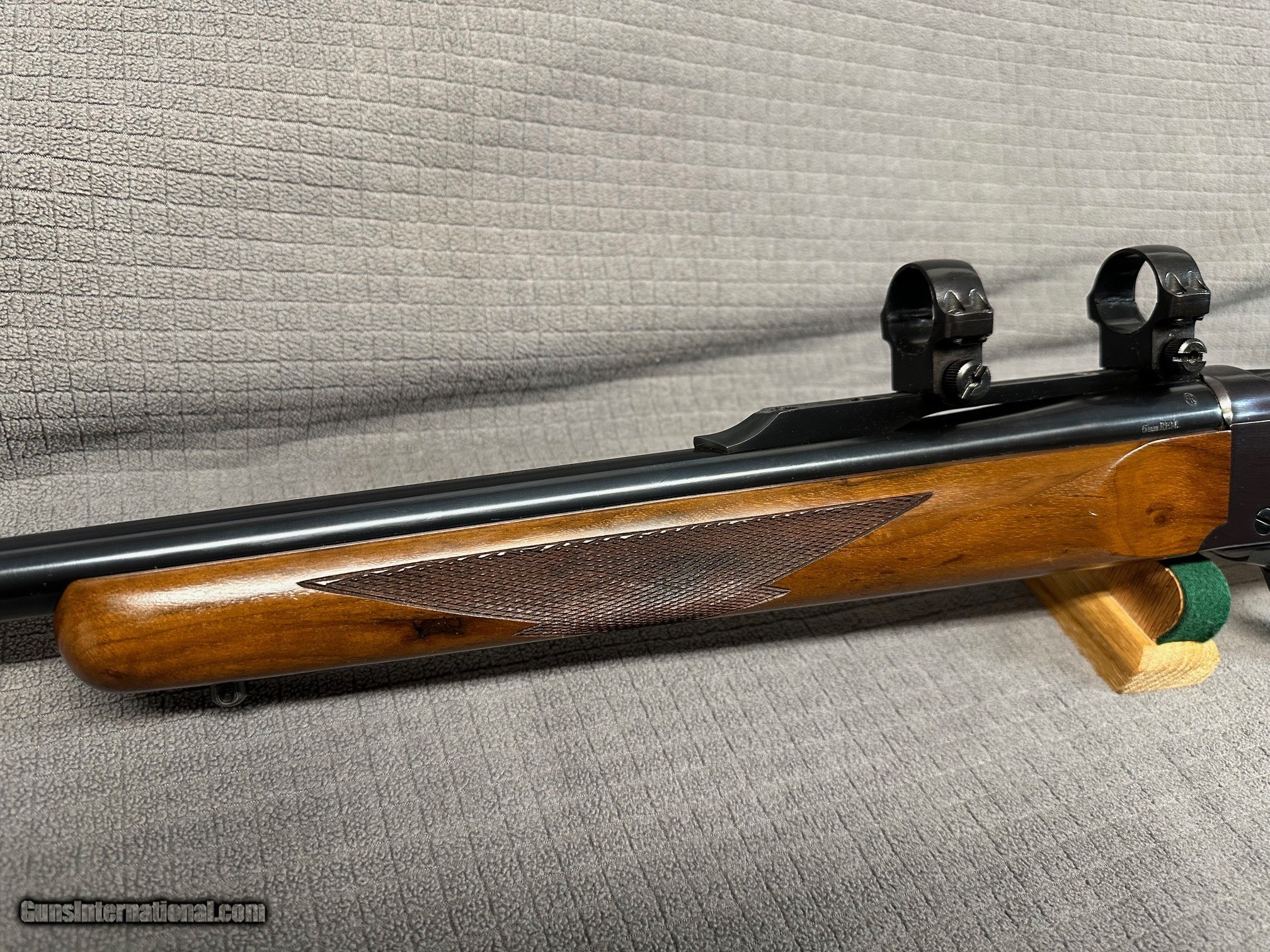 Description: **Beautiful** #1-B (beavertail) in 6mm Remington. 1978 mfg, 26" Barrel with excellent bore. Does not appear shot much. Metal is 98% with a bit of wear on edge of muzzle and a bit of thinning on edges of lever. Receiver turning a bit plumish color. Wood 98% overall. Buttstock wood is NICE with only a few VERY small marks. Forearm has a few light marks, mostly on bottom side. Factory rings included. Overall a really nice looking rifle in a great caliber. $75.00 Shipping(lower 48) to your FFL. NO CA Sales. Thanks for Looking. SOLD |