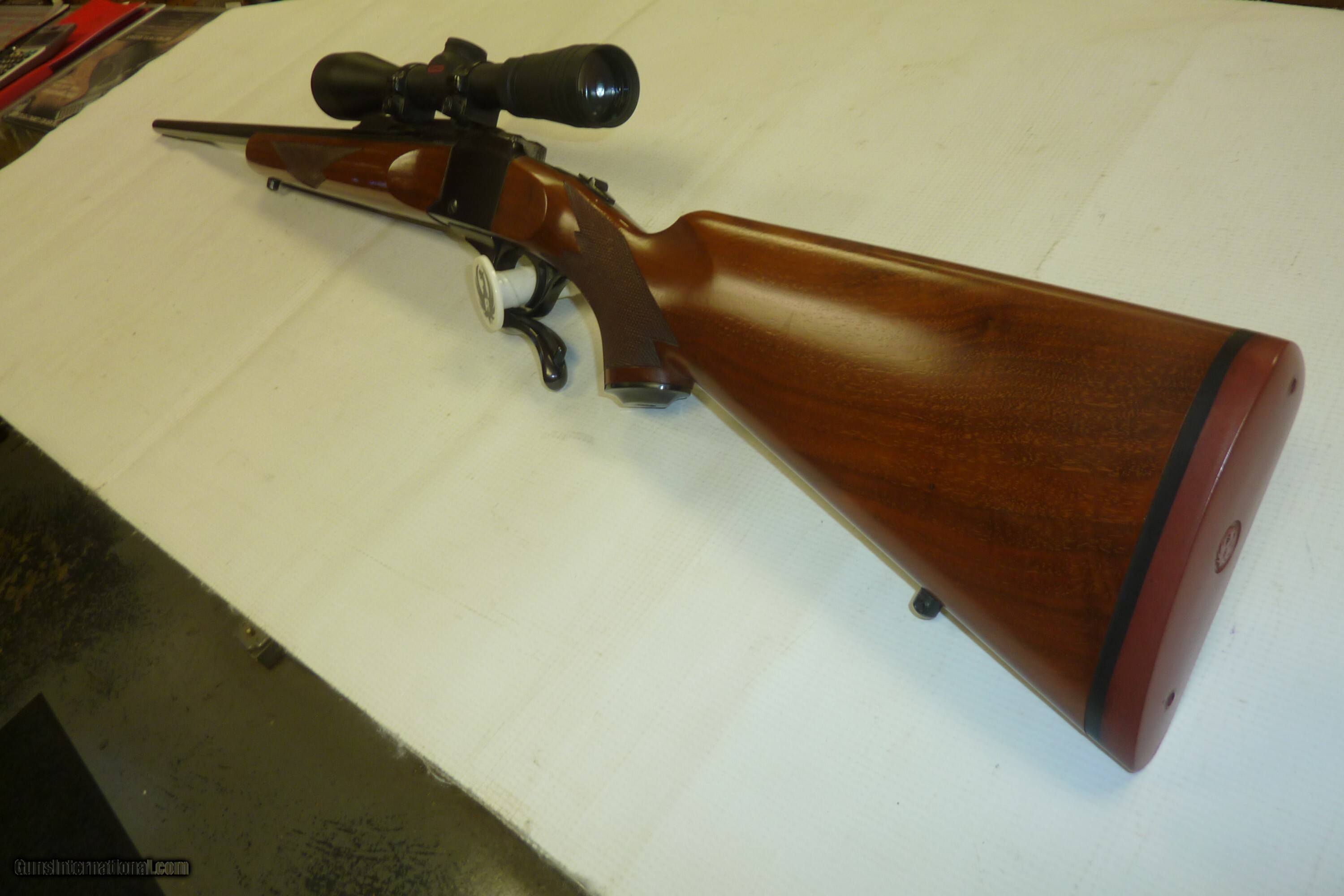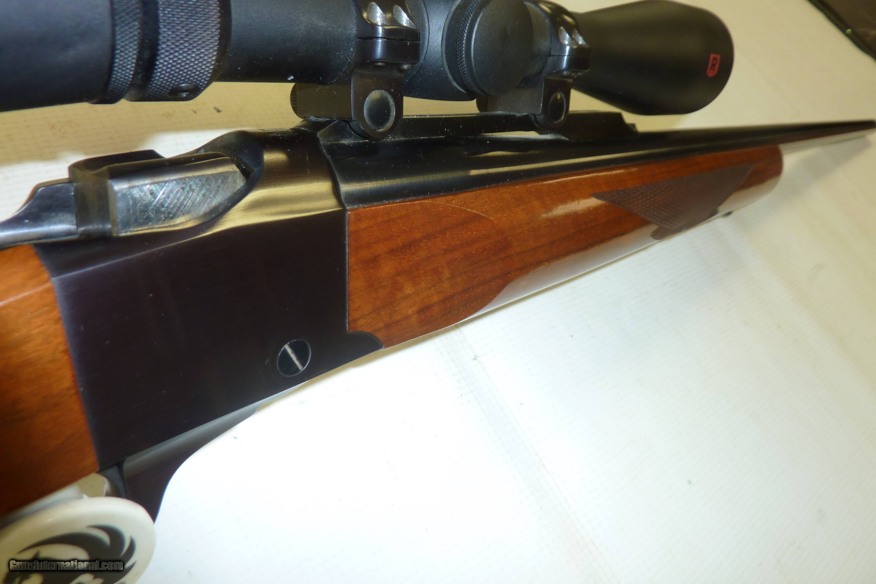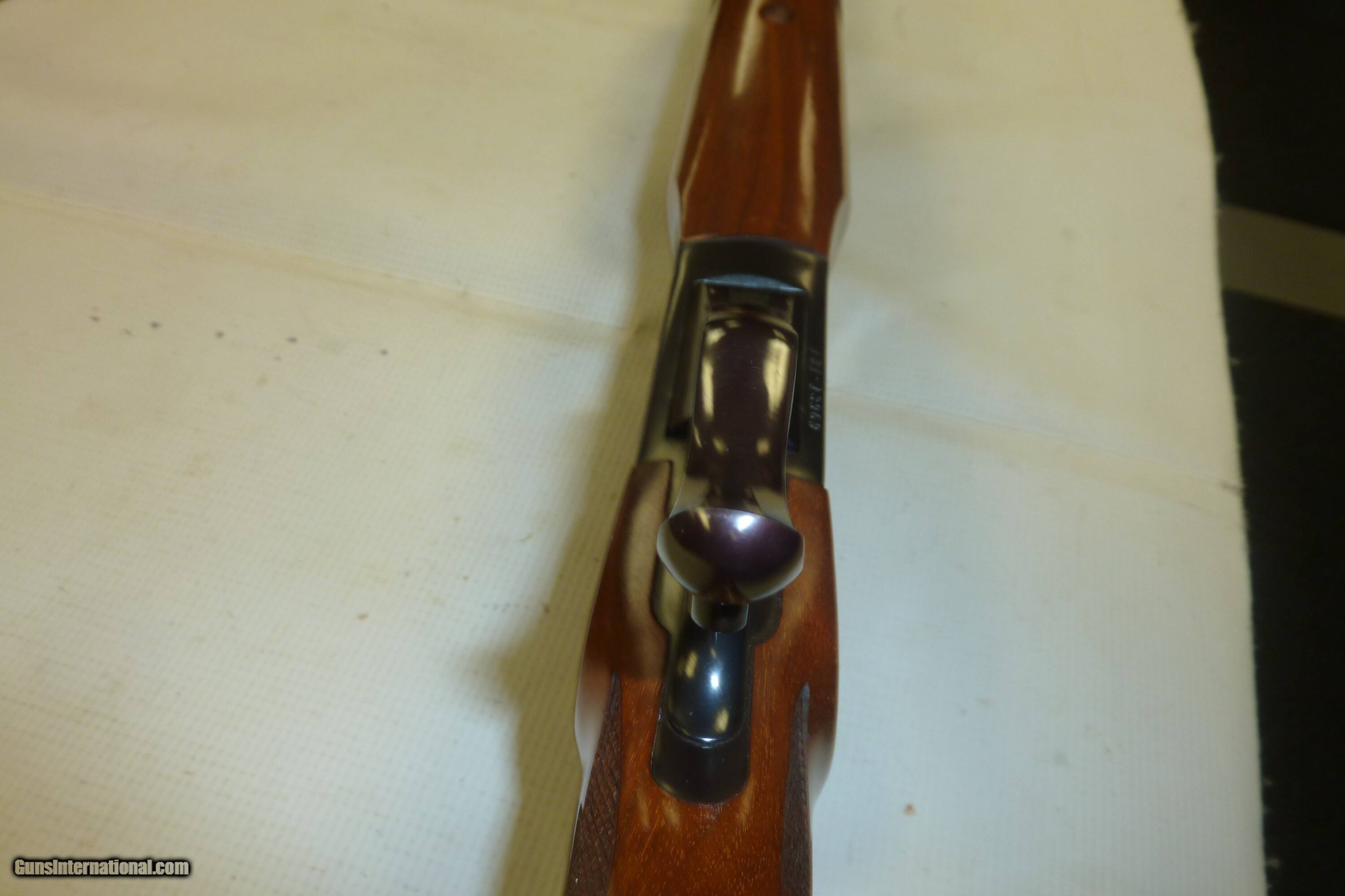 Description: Ruger 1-B single-shot rifle in .243 cal. Falling block action, curved Farquharson lever. 22" barrel with a bright bore and strong rifling. Quarter rib barrel with integral scope bases with Ruger rings. Checkered stock and semi-beavertail forearm. Weighs approx 8.25 lbs. The original one-owner added a Redfield 3x9x40 matte black scope. Serial 3 131-13969, manufactured in 1977, is a pre-warning Ruger. Almost perfect with very limited handling marks on the wood, the bluing is 99% Price: $1,529.00 Shipping: $75.00 Contact Seller |
