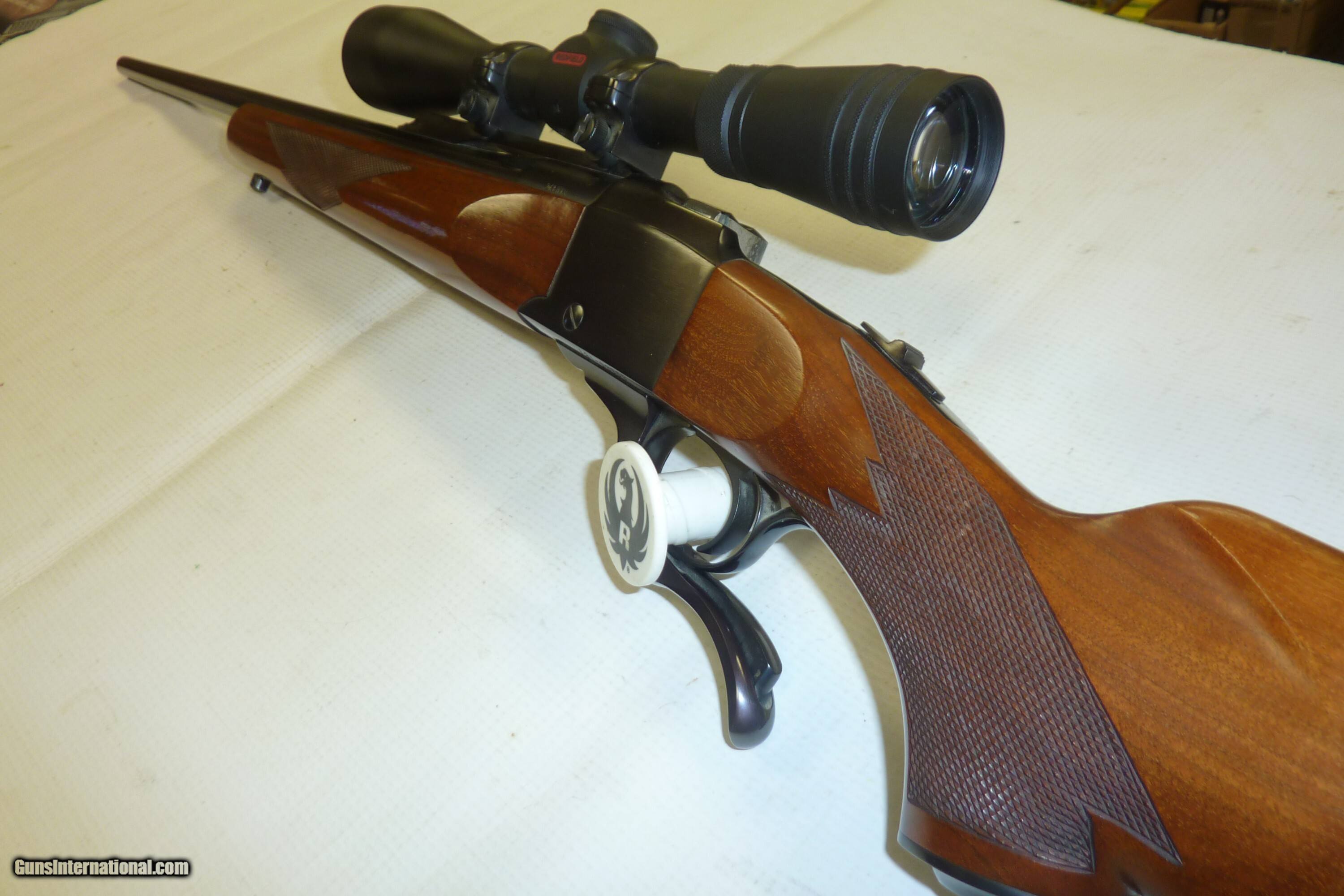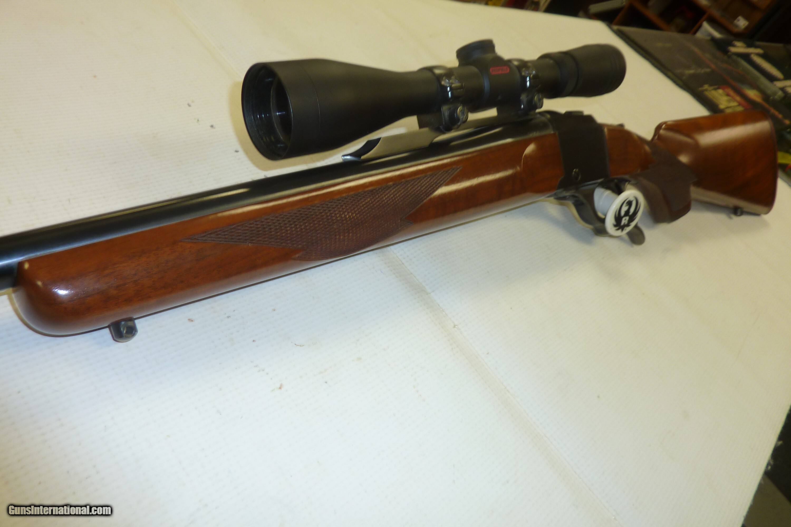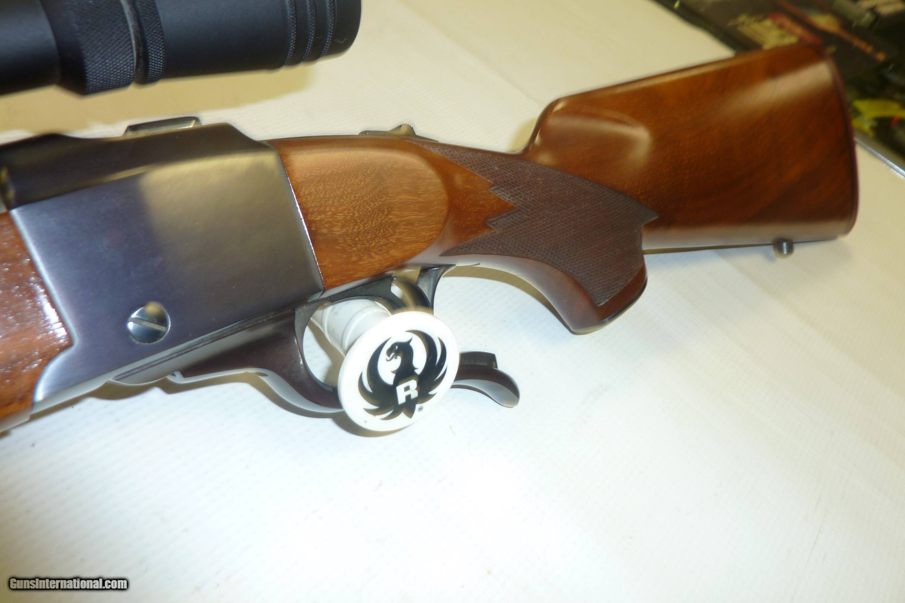 Description: Ruger 1-B single-shot rifle in .243 cal. Falling block action, curved Farquharson lever. 22" barrel with a bright bore and strong rifling. Quarter rib barrel with integral scope bases with Ruger rings. Checkered stock and semi-beavertail forearm. Weighs approx 8.25 lbs. The original one-owner added a Redfield 3x9x40 matte black scope. Serial 3 131-13969, manufactured in 1977, is a pre-warning Ruger. Almost perfect with very limited handling marks on the wood, the bluing is 99% Price: $1,529.00 Shipping: $75.00 Contact Seller |