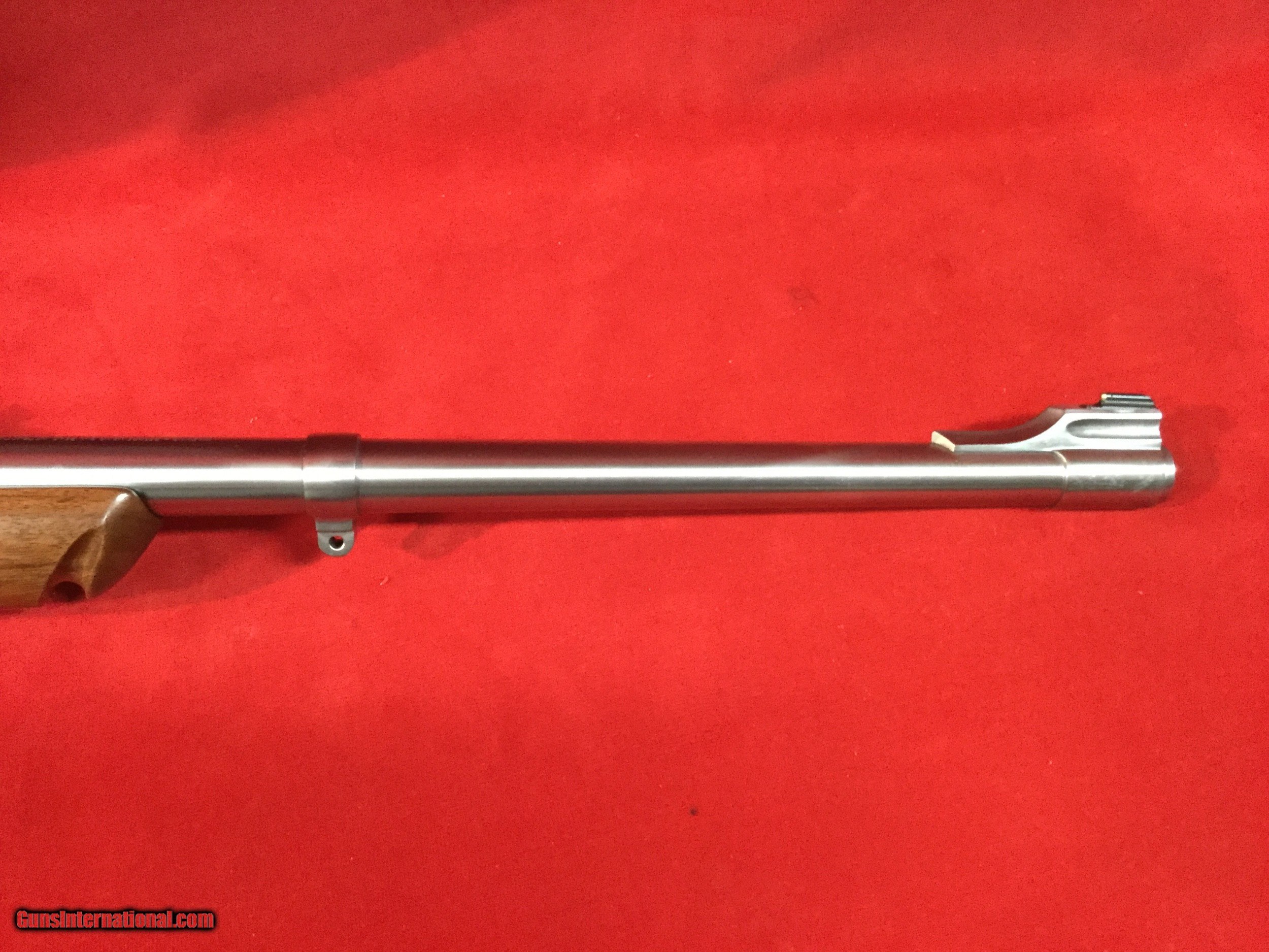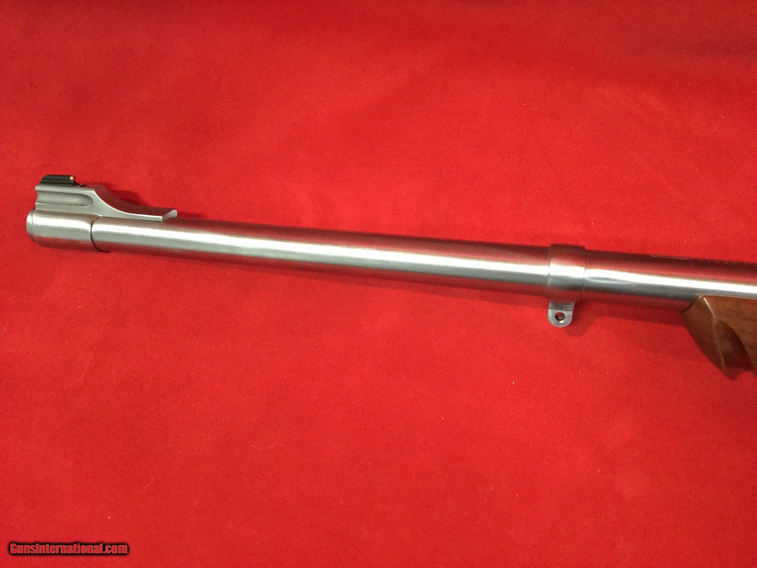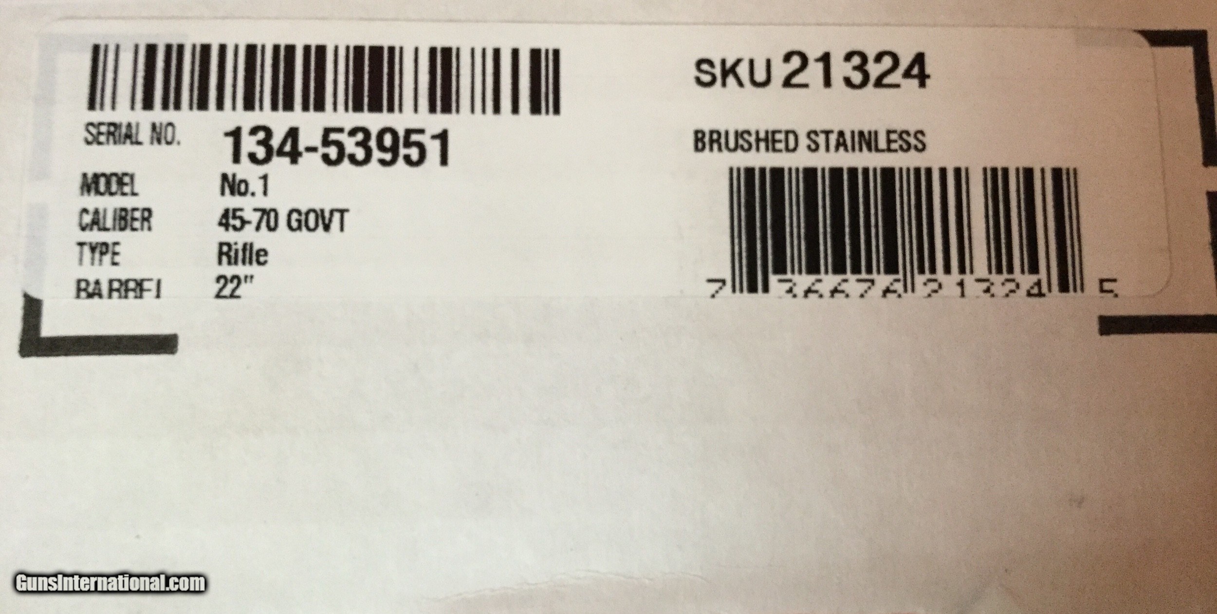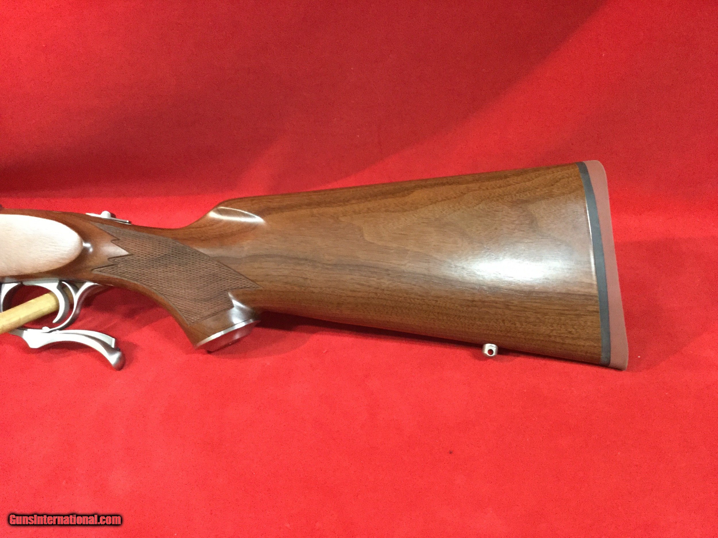 Description: Ruger #1 Brushed Stainless and walnut stock chambered in 45-70. 22" barrel with brass bead front sight. Rifle is lightly used with very little wear. Includes factory box and rings. $1495.00 plus $45.00 for shipping and insurance. Add 4% for credit card payments SOLD |