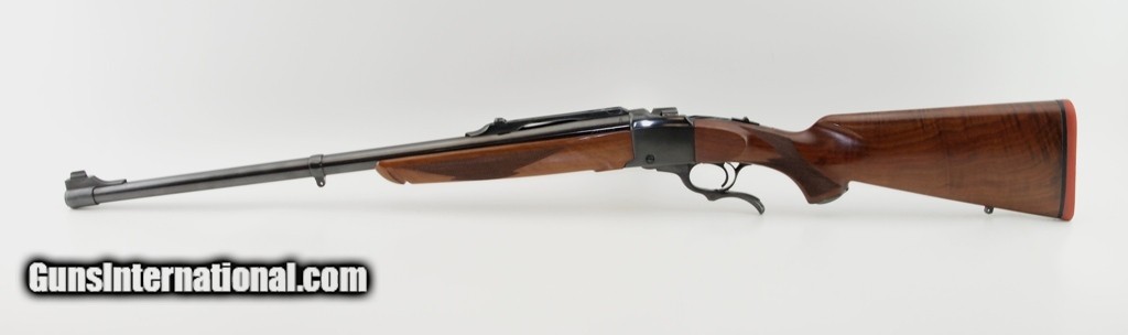 Description: Ruger #1-H Tropical .375 H&H, 24" bbl, bright shiny bore, good rifling, blued finish, V notch rear sight, brass bead front sight, rolling block lever action, very nice checkered grip stock - forearm, light handling marks, tang safety, swivel studs, LOP - 13 5/8", and red Ruger recoil pad. Great rifle for your collection! Add 3% for Credit Card Shipping $30.00 SOLD |