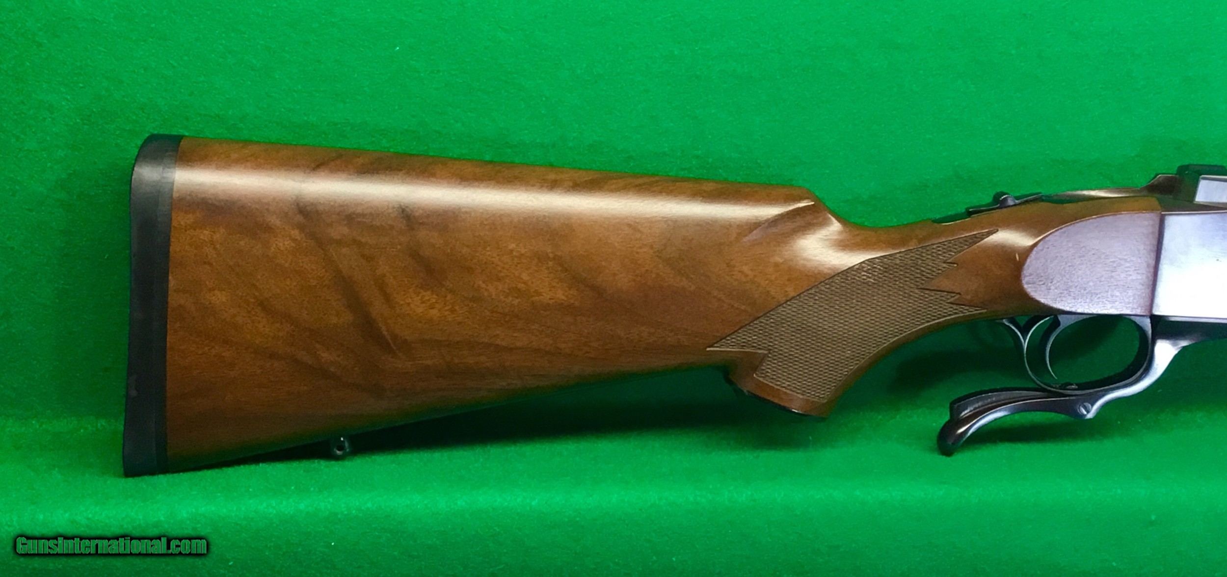 Description: Ruger #1B in 218 Bee, 26 inch barrel. Scarce model in Near mint condition, rings included but not shown. 133 prefix serial number. $1298 plus $45 insured shipping. Lay a way available. No credit cards and no trades. SOLD |