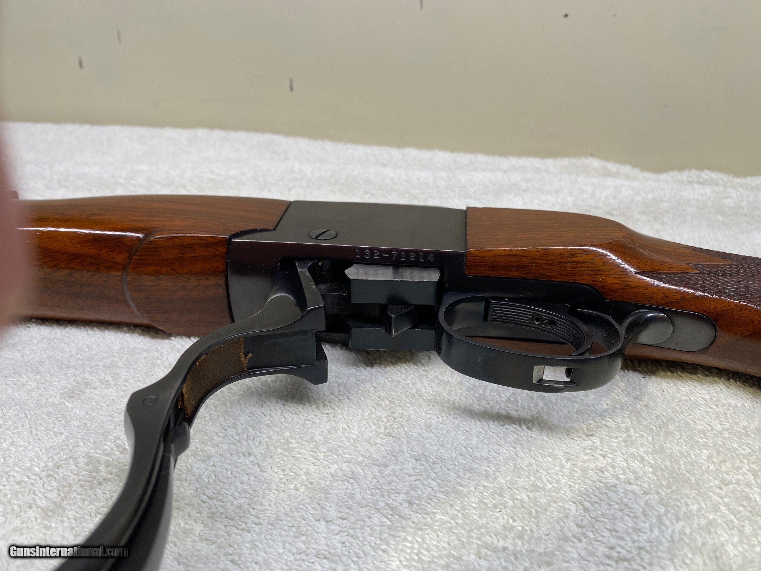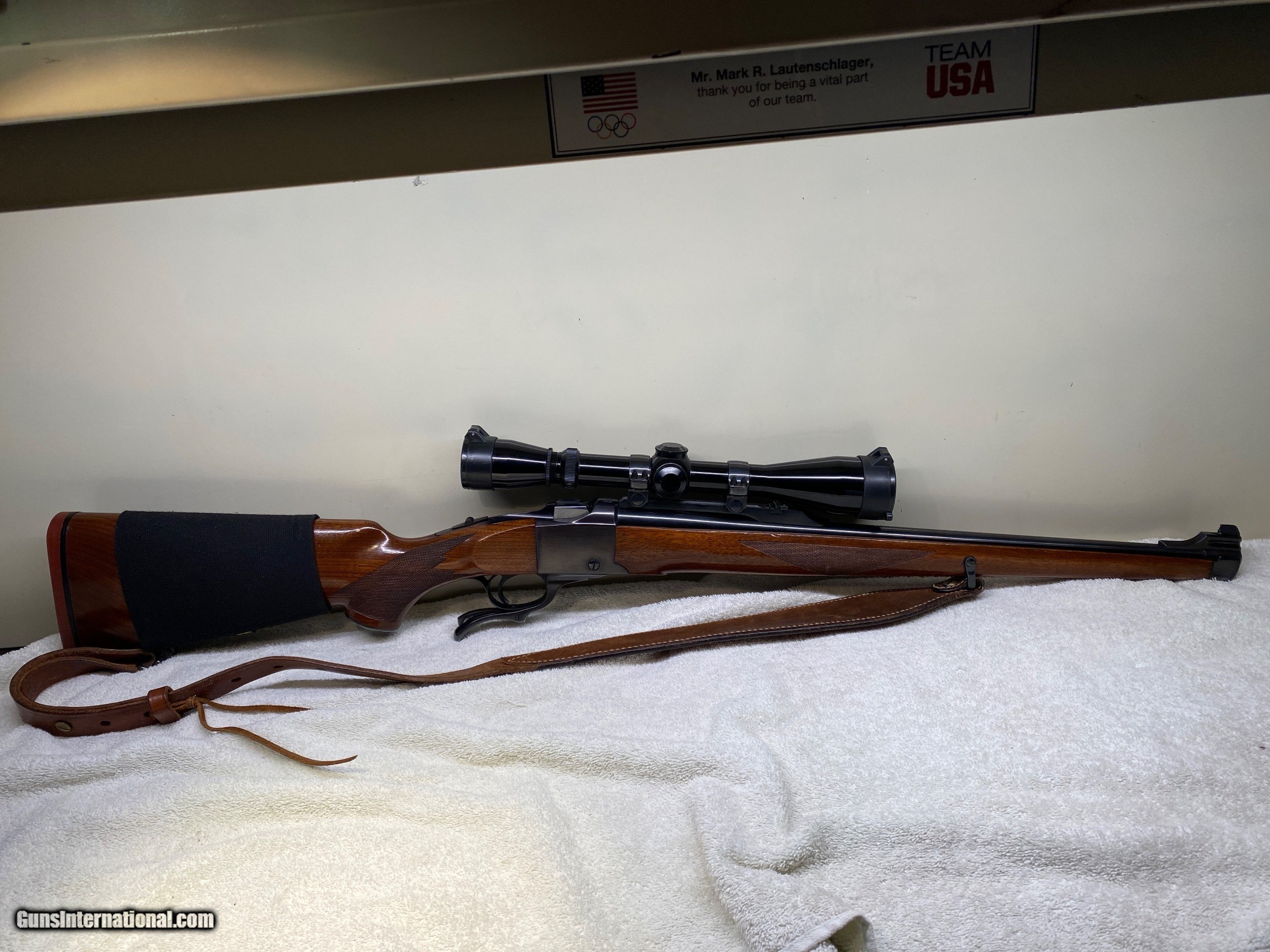 Description: SALE PENDING. Beautiful Ruger #1 International, in the all around 30-06 cal. Everything goes as you see it. (except the ammo) Including, the New Leupold VXII 3 X 9 X 40mm scope. Also the scope caps, ammo sleeve, and sling. Both rifle and scope are covered under Manufacturers lifetime warranty. I've removed the scope for shipping, and to get better pictures. Easy to re-install. Another closet queen. Has seen very little use in the last 37 years, well taken care of. $75.00 priority, insured shipping to your FFL. Check or money order. SOLD Rifle Caliber: .30-06 Springfield Manufacturer: Ruger Model: #1 International Serial Number: 132-71814 Barrel Length: 20 Ejectors: yes Condition: excellent Metal Condition: excellent Wood Condition: excellent Bore Condition: excellent Barrel Type: round Action: falling block Triggers: adjustable Stock: International Butt Pad: original Weight: 8# Sights: original Manufacture Date: 1985 Extras: as listed Item Location: Northern New York |