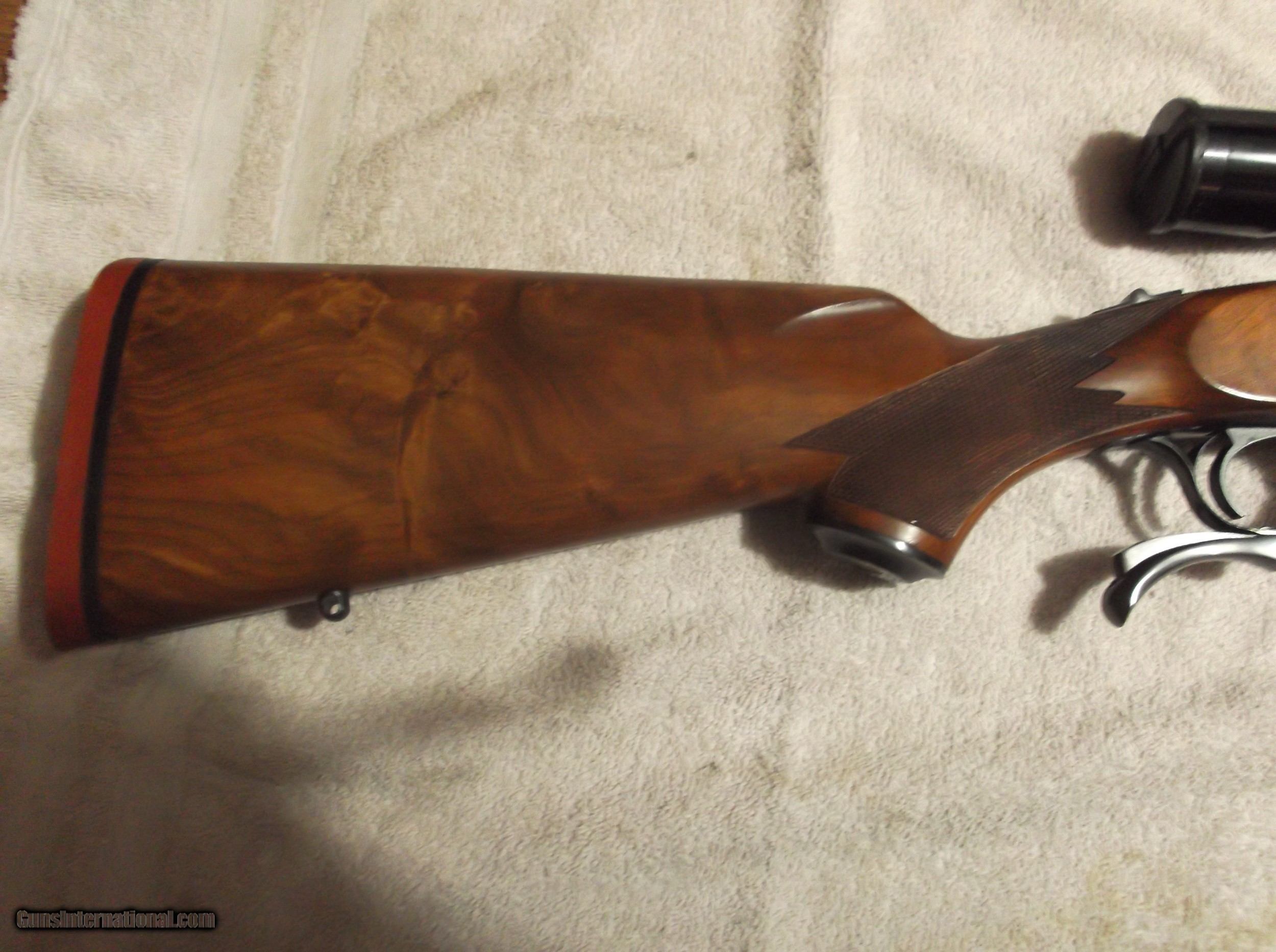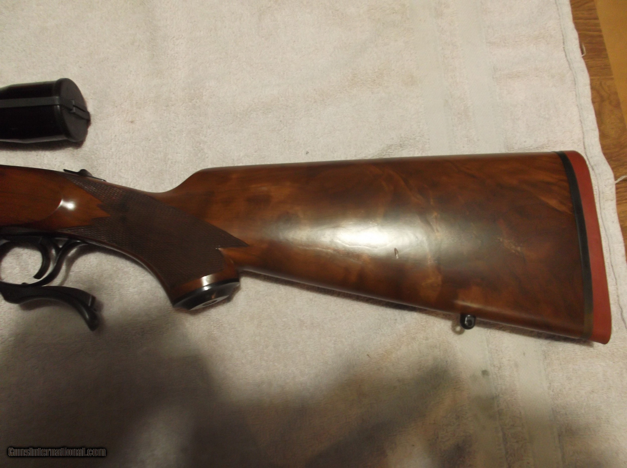 Description: !976 Ruger #1 B Liberty Edition .243 Win. Rifle with Leopold Scope. SN #130-37988 This is a single shot falling block rifle This was one of Ruger's Liberty Rifles made in 1976 celebrating the 200th year of our Republic. This rifle was bought brand new in 1976 and was displayed in a case for over 30 years in my fathers gun shop to promote Ruger firearms. As far as I know this rifle has never been fired. After the shop closed it sat in my dads store safe since 2009. The rifle is in excellent condition. The metal is flawless. The stock checkering is flawless. The rifling is perfect. The only flaws this rifle has is three dents from poor safe handling over the last decade. There is a small dent in the right side of the foreend (picture 11) There are 2 dents in the right side of the stock (picture 12) Lower right of stock and a small imperfection at the front of the cheek riser. These are the only things that keep this rifle from being perfect. I am not sure what exact model the Leopold scope is on it, but its a long range, duplex reticle, 12x scope that is adjustable at the bell end from 40 to 800 meters. The scope is crystal clear. It has Leopold proprietary rings attaching it to the rifle. I have no idea if the scope is sighted to the rifle. Unforunately there is no box or manual for the rifle Asking $1900 or Best Offer for the rifle and scope. Or $1500 or Best Offer for the rifle by itself Shipping, Handling and Transfer cost will be $50 Accept Money Order and Cashier Check for payment Any questions Please contact me. SOLD Rifle Caliber: .243 Winchester Manufacturer: Ruger Model: #1 B Serial Number: 130-37988 Condition: Excellent Metal Condition: Excellent Wood Condition: Very Good Bore Condition: Excellent Action: Falling Block |