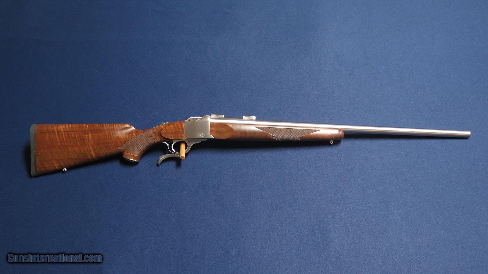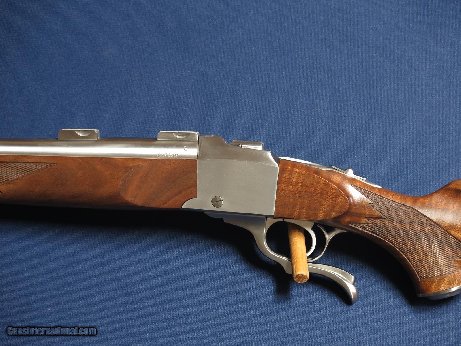 Description: Ruger No 1-V Satin Stainless Walnut 223 Rem. 26 inch heavy barrel. Excellent pre owned condition with original box, rings and swivels. SOLD |