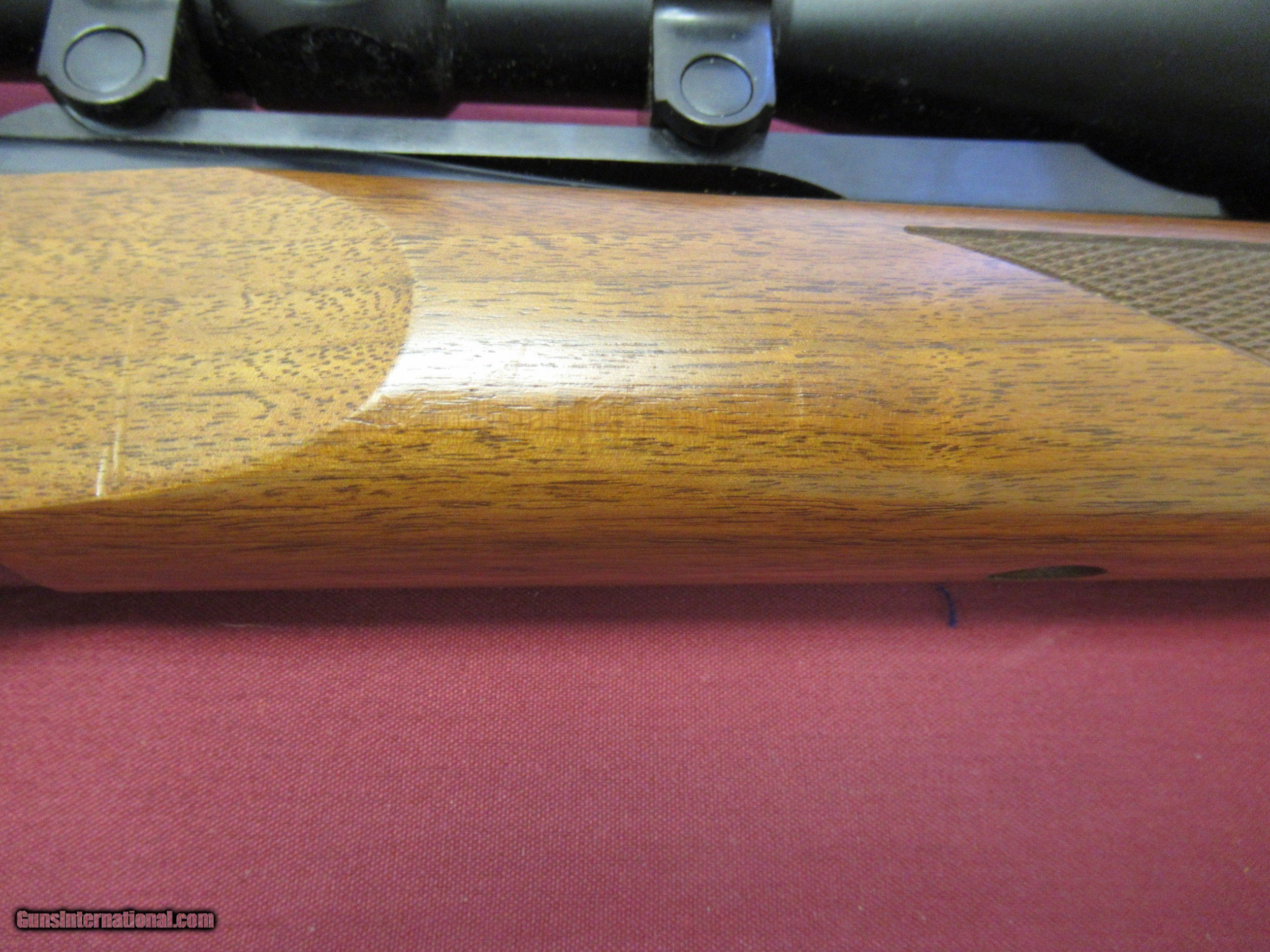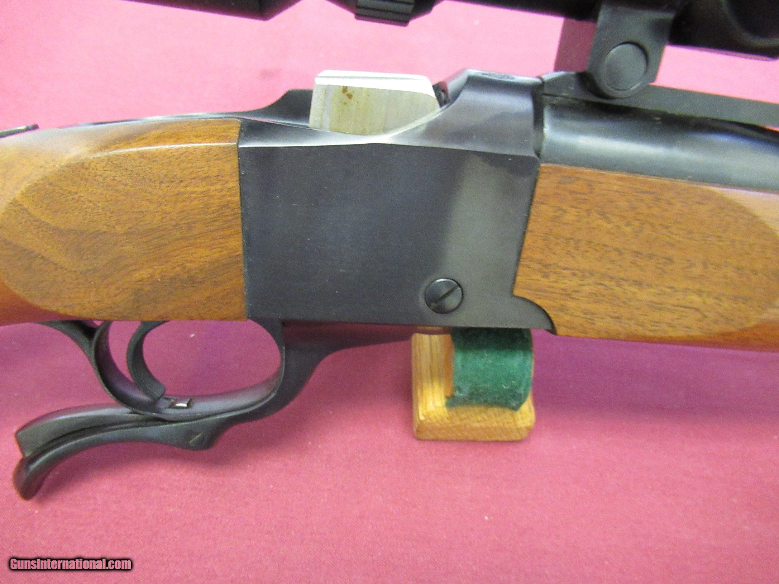 Description: Real Minty Ruger 1A in 204 Ruger Caliber topped off with a Mueller 4-16x50mm Scope. According to the Original Owner, this gun was just sighted in and never used after that. Metal retains 99% Original Blue Finish. Wood retains 98% Original Finish with some very minor marks on the forend (pictured) and Beautiful Figure in the Buttstock. Bore is Mint. Just has never been afield except to sight it in and believe the marks in the wood are when it was sighted in. A real keeper for the Ruger #1 Collector and am told it is a Real Shooter!!! SOLD |