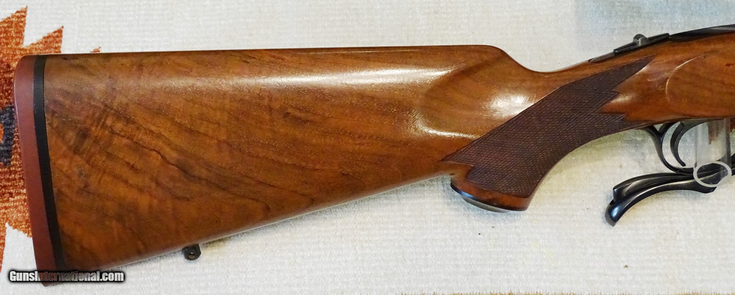 Description: Ruger model #1B, 243 cal. w/26"bbl. comes with a Redfield 4X12 scope w/special scope rings, and Ruger carrying case w/side pocket. The rifle is in excellent condition with beautiful highly figured wood (See Pictures) and 2 minor flaws. The first are 3 very small (about 1/16th") dents on the left side of the stock. To small to see in the pictures, you probably wouldn't notice them if I didn't tell you they were there. The second is a flaw or rub off of the blueing about 3/4 of the way down the barrel (see picture) The large spot is about 1/2" in diamiture and a couple of 1/8" and 1/4" spots. These are grouped together and are on the under side of the barrel, (see picture) not noticeable from either side or top. the scope is in excelent condition and very clear. The carrying case is like new. Please ask any questions you may have and I can sent more pictures if needed. Asking price is $1,100.00 plus shipping and insurance SOLD Rifle Caliber: .243 Winchester |