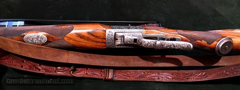 Description: STURM RIUGER CUSTOM #1 SINGLE SHOT, 22 REM MAG RIFLE, FULL COVERAGE ORNATE SCROLL, ACTION, QUARTER RIB, GRIP CAP, LEVER, BBL , MUZZLE, RINGS, 23" CUSTOM OCTAGPON BBL, EJECTORS, CUSTOM CANJAR TRIGGER, CUSTOM XXX EXHIBITION GRADE CALIFORNIA ENGLISH WALNUT, PISTOL GRIP, TRAP DOOR, BUTTPLATE, CHEEKPIERCE, SCHNABLE FOREND, PRECISE FLEUR-DE-LIS CHECKERING, LOP 13 1/2, 9LBS WITH SCOPE, LEUPOLD 8X SCOPE, NO SIGHTS, 99% BLUE & WOOD, EXCELLENT BORE ~! SOLD Rifle Caliber: .222 Remington Magnum Manufacturer: STRUM RUGER Model: CUSTOM #1 Bore: 2 REMINGTON MAGNUM Ejectors: YES Condition: 99% CONDITION ! Metal Condition: 99% BLUE Wood Condition: 99% WOOD Triggers: CUSTOM TANJAR TRIGGER Stock: CUSTOM XXX EXHIBITION GRADE CALIFORNIA ERNGLIS WALNUT LOP: LOP 13 1/2 Weight: 9LBS WITH SCOPE Sights: LEUPOLD 8X SCOPE, NO SIGHTS Engraving: FULL COVERAGE ORNATE SCROLL Item Location: SAFARI OUTFITTERS LTD. 2517 ROUTE 44 SALT POINT, NY 12578 |