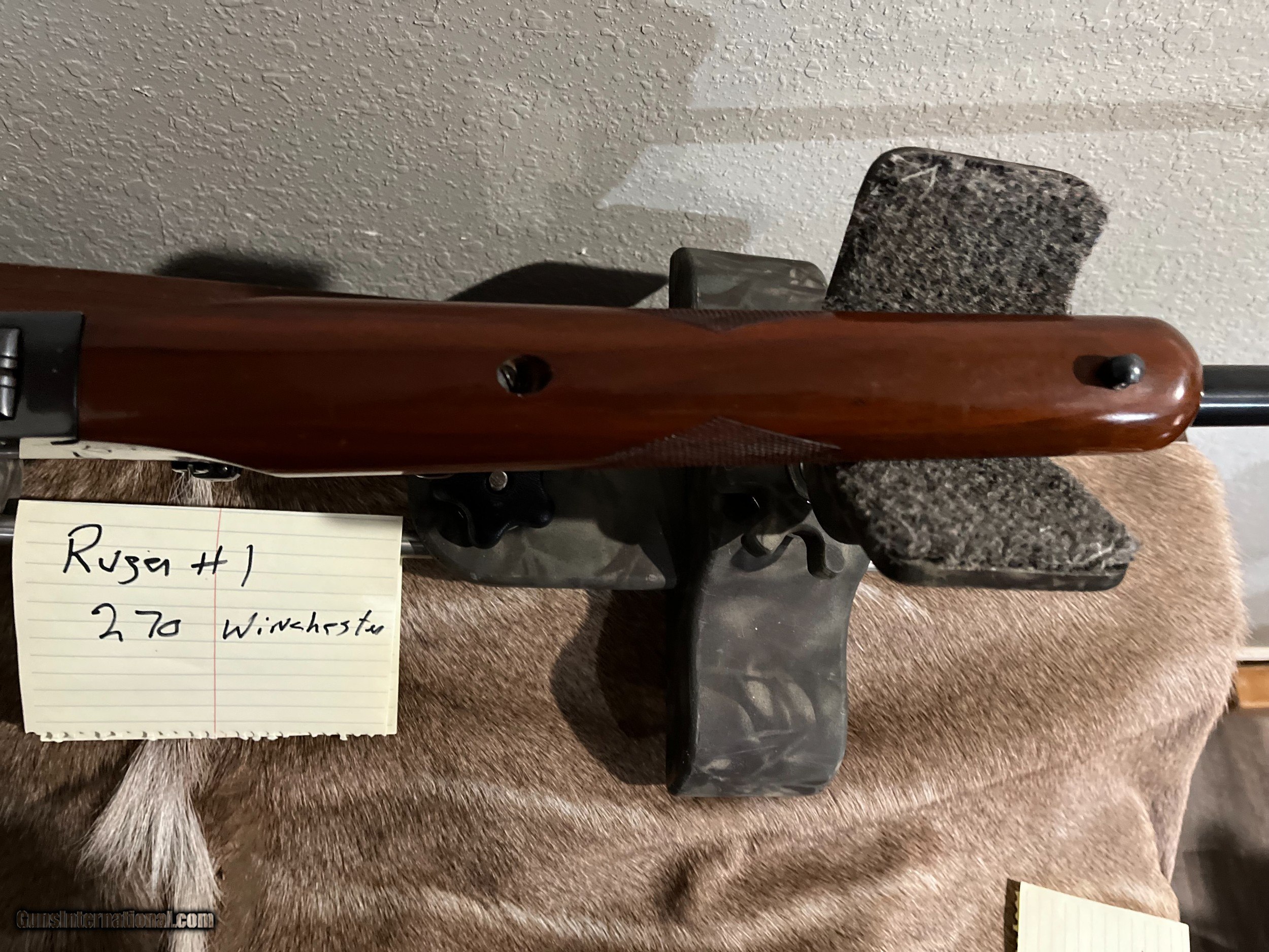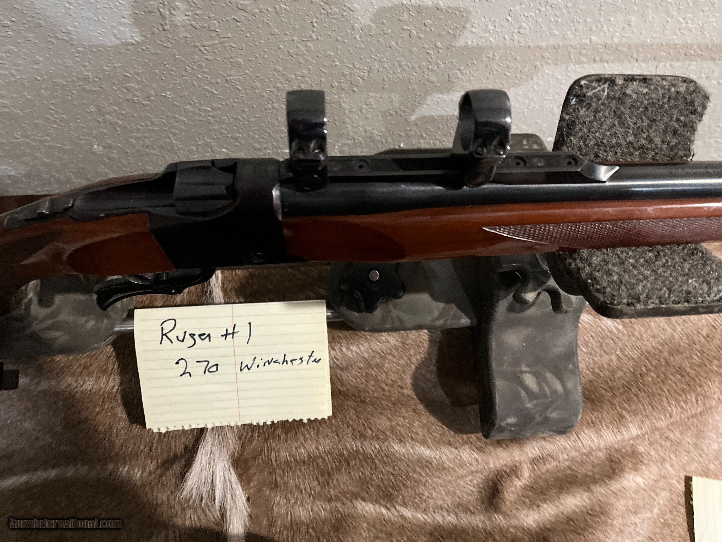 Description: This is a very nice Ruger #1 in 270 Caliber. This caliber is a very popular hunting caliber for deer , Elk and other medium to large game. The wood is very nice with minimal wear on the wood. The bluing is also in very nice condition with only slight wear on the end of the barrel. This rifle woulld make a nice reliable hunting rifle. The shipping is $65. and tax will apply where needed. SOLD Rifle Caliber: .270 Winchester Manufacturer: Ruger Model: 77 Ruger #1 Serial Number: 132-49241 Barrel Length: 26 inches Condition: very good Metal Condition: 95% Wood Condition: excellent Bore Condition: excellent Barrel Type: medium Action: Lever Stock: wood LOP: 14 inches |