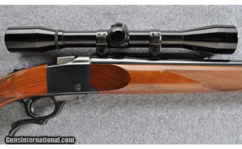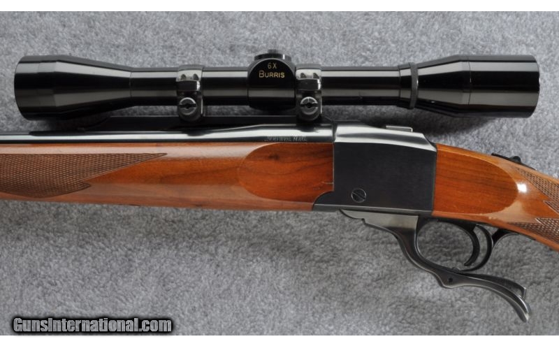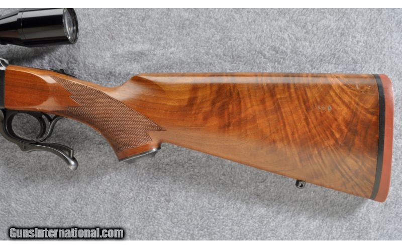 Description: SOLD Manufacturer: 1976 Caliber Info: .300 Winchester Magnum Metal Condition: Shows some minor rust spots on the barrel and blue wear at sharp edges Wood Condition: A few small dents and scratches appear on the butt stock and fore end Bore Condition: Shows strong rifling and is bright. Barrels: 26 Stock: Checkered pistol grip with metal cap Stock Dimensions: 13 5/8" LOP Fore End: Checkered Beavertail Butt Pad: Ruger red rubber Weight: 9 lbs. 4 ozs. Sights: Fitted with a Burris 6X Fixed Power Scope Item Location: Grand Junction, CO |