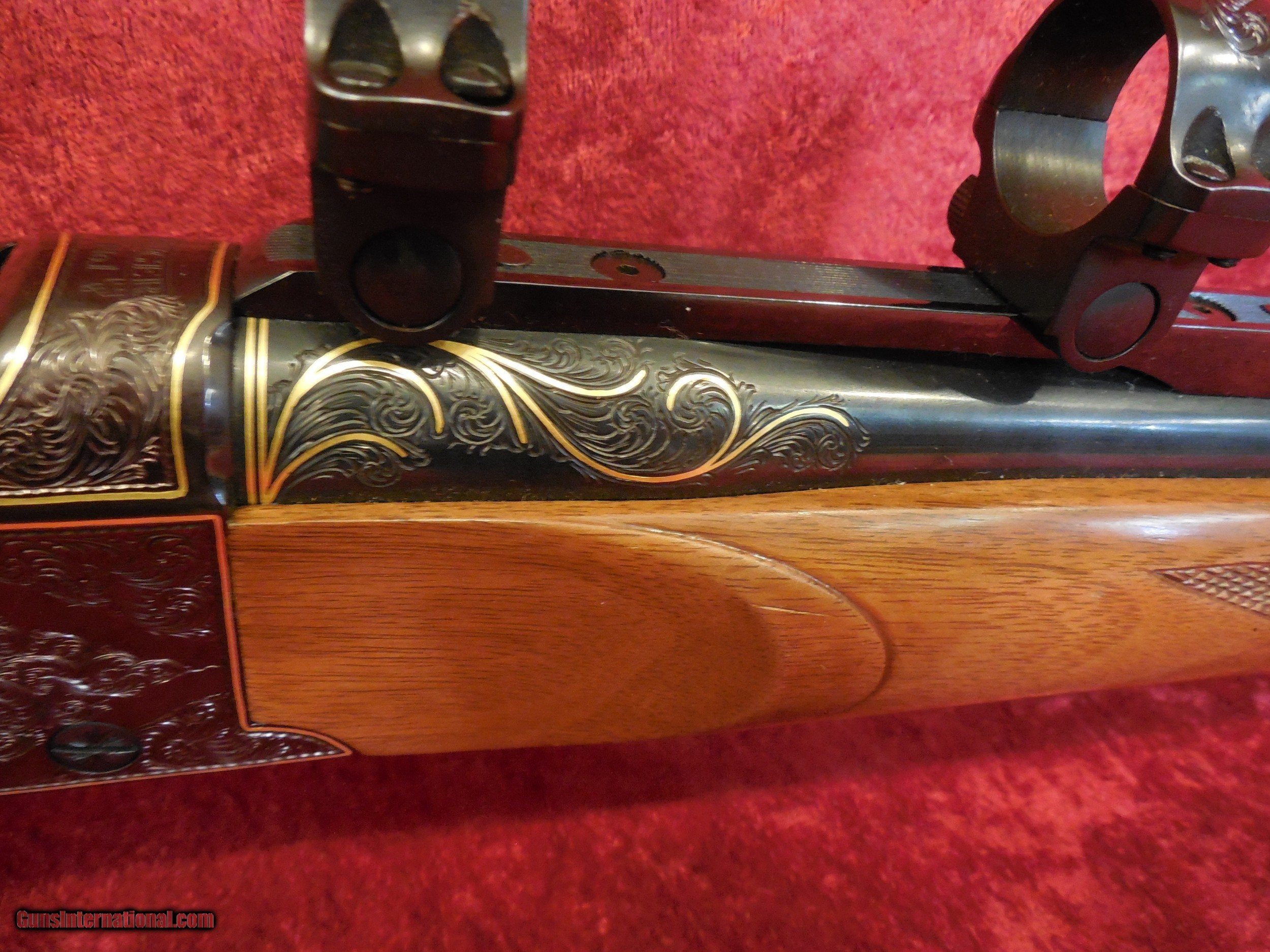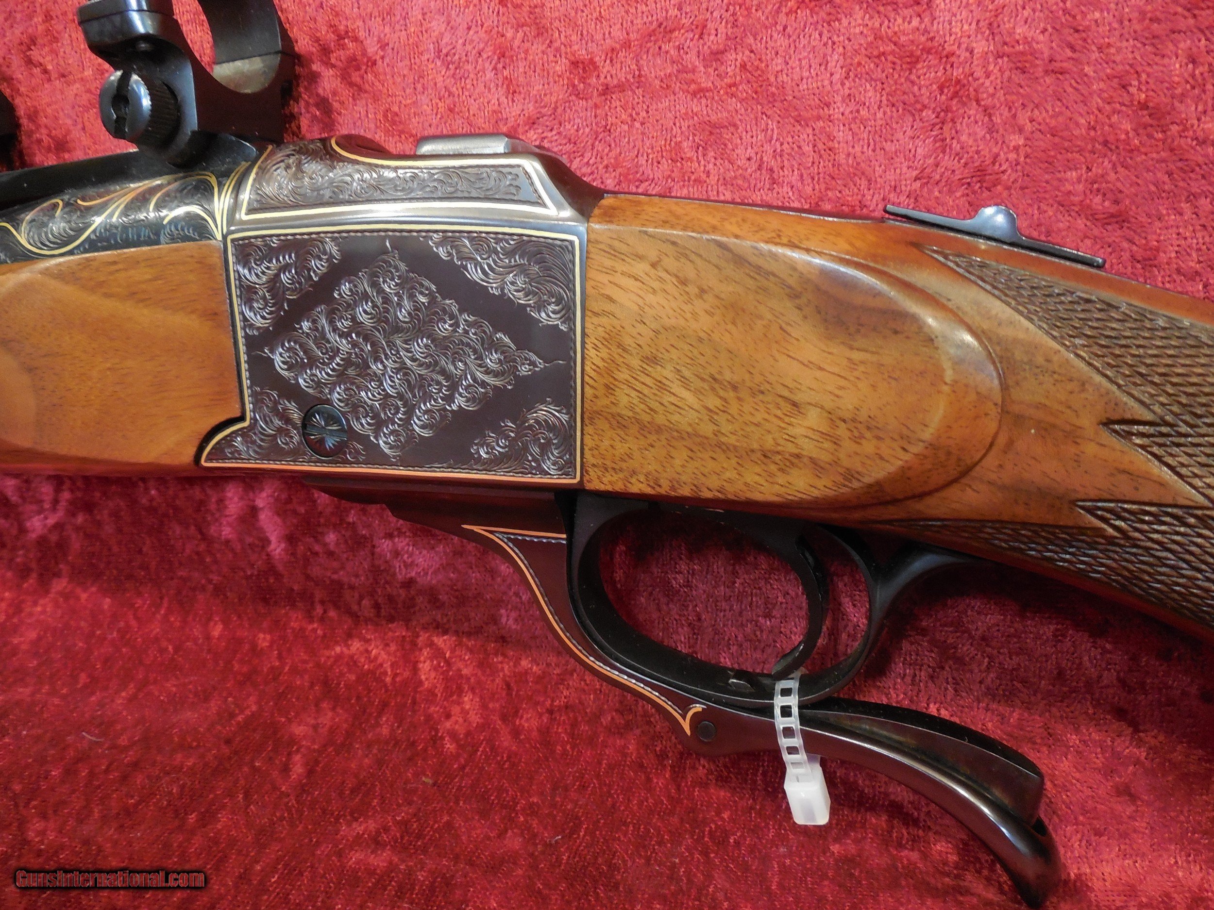 Description: Ruger No. 1 .270 win cal 200th year of American Liberty Rifle, Engraved & Gold Scrolling Made in the 200th year of American Liberty Rifle!! Here is an excellent condition Ruger No. 1, single shot rifle in .270 win cal, awesome walnut stock, engraved receiver and barrel with gold scrolling and matching rings. Gun is overall in excellent condition and appears to be unfired. Wood shows a couple of light handling marks. Please see pictures. Additional pictures upon request.