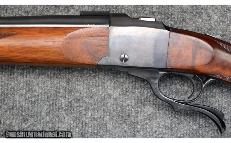 Description: For your consideration, a Ruger No. 1 chambered in .22-250 Remington. This piece features a set of Unertl type scope bases. .22-250 Remington SOLD Metal Condition: Very Good Wood Condition: Very Good Bore Condition: Very Good Barrels: 24 Triggers: Serrated Stock Dimensions: 13.5" LOP Fore End: Checkered Butt Pad: Rubber Weight: 8.5 lbs Sights: None Item Location: Gainesville, VA |