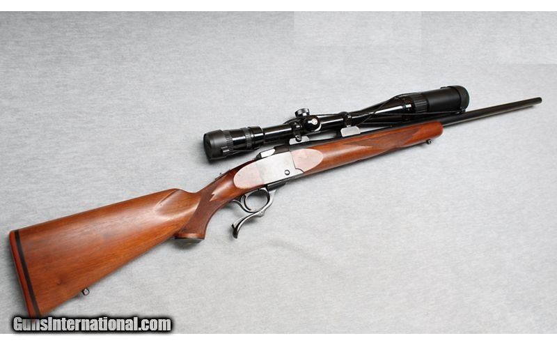 Description: Ruger No.1 in .22-250 Remington. This rifle is built on the strong, simple, and compact falling-block breech mechanism and uses a cold hammer-forged barrel. The results are exceptional accuracy and longevity. This rifle was made in 1967 which was the first year of No. 1 production. This rifle is in excellent original condition with very few handling marks. .22-250 Remington SOLD Metal Condition: Excellent Wood Condition: Excellent Bore Condition: Bright Barrels: 26 Inches Triggers: Adjustable Factory Stock Dimensions: LOP 13 1/2 Inches Fore End: Checkered Walnut Butt Pad: Rubber pad Sights: Bausch & Lomb Balvar 6-24x40 rifle scope Item Location: La Vista, NE |