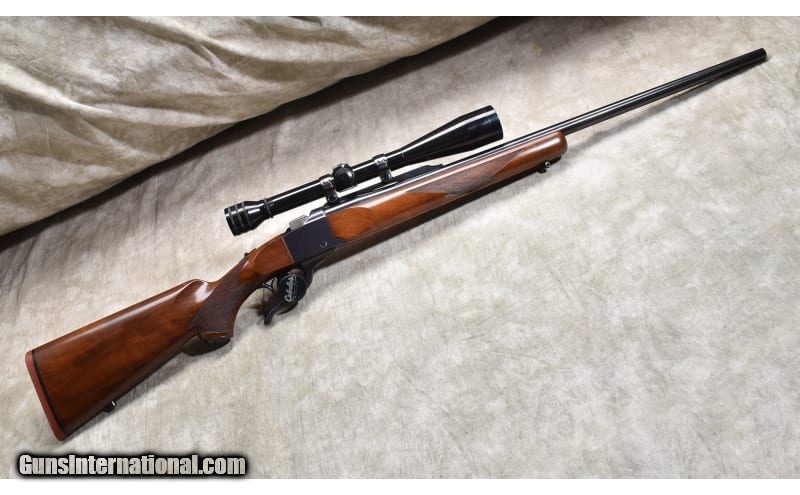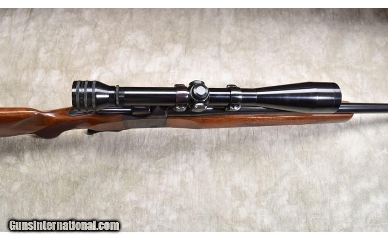 Description: Great varmint rifle featuring a 26-inch barrel, a 12 power scope, nice walnut stock, and in good shape. YOM is 1977 .22-250 Remington SOLD Chambers: Single shot. Metal Condition: Very good. There is a bit of wear around the muzzle and the blue appears to be somewhat faded. Wood Condition: "Very good. There is one scratch, about 1.75 inches long, on the fore end. Bore Condition: Shiny with good rifling. Barrels: 26-inch Triggers: Factory trigger. Stock Dimensions: 13-5/8 inch LOP. Fore End: Well-matched walnut beavertail. Butt Pad: Rubber pad. Weight: 9 LB - 10 OZ Sights: Set up for scope and outfitted with a Redfield fixed 12x scope. Item Location: Rogers |