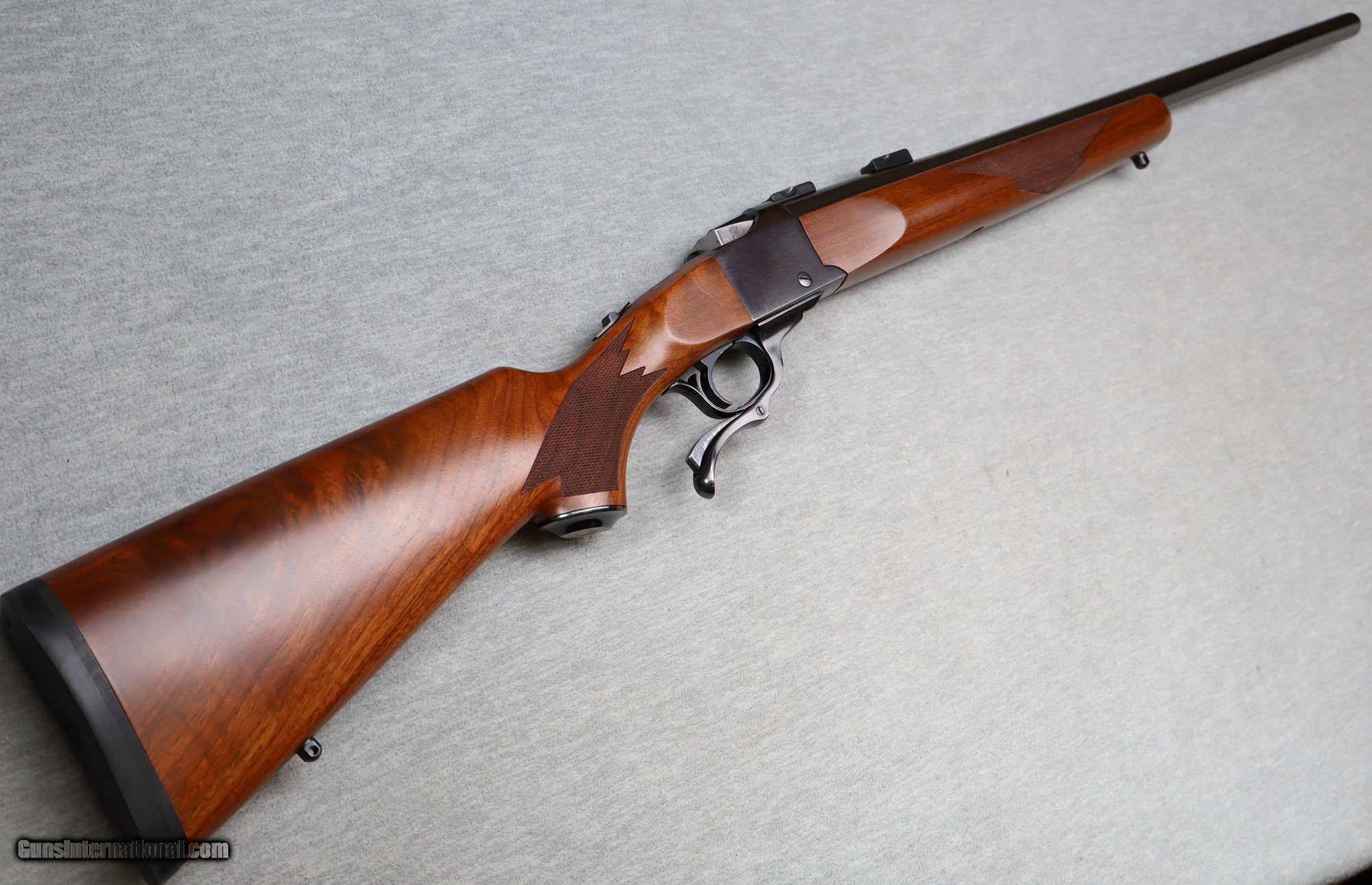 Description: Ruger No.1 single shot rifle with a 24 inch barrel and chambered in .22 PPC. Rifle look like it hasn't been used much if at all. None SOLD Metal Condition: very good Wood Condition: very good Bore Condition: bright Barrels: 24" barrel Stock Dimensions: 14 Fore End: checkered wood Butt Pad: rubber Weight: 8 lb - 4 oz Sights: none Item Location: La Vista, NE |