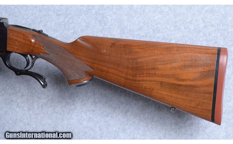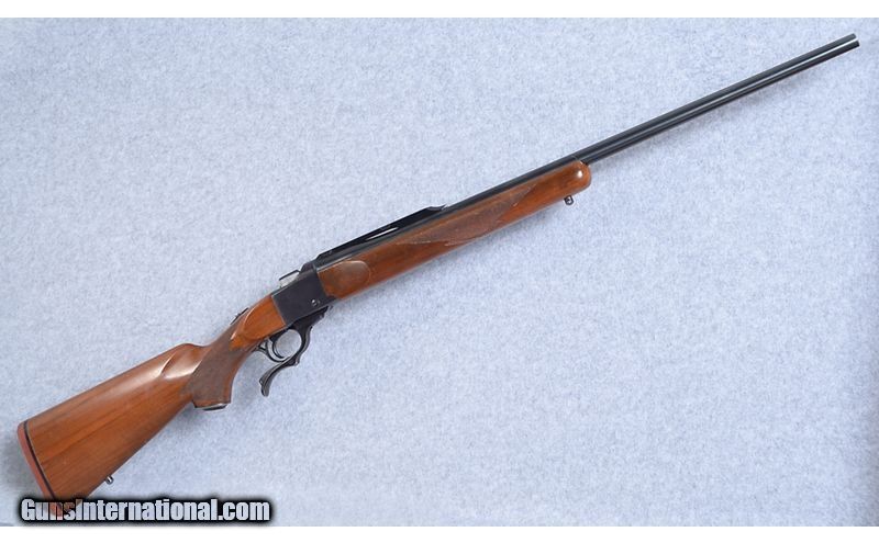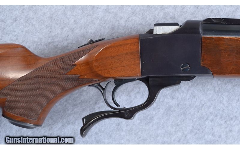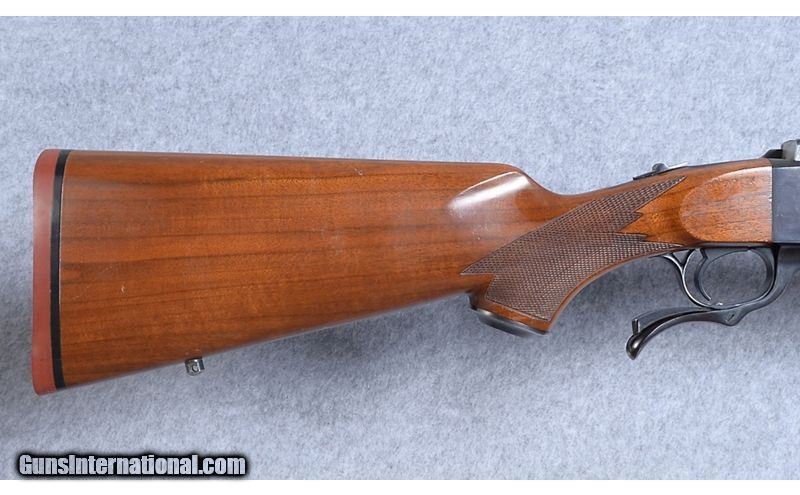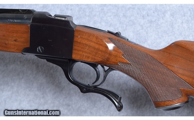 Description: Ruger's No 1 rifle features a strong, simple, compact falling-block breech mechanism with artillery-style breechblock and under-lever. The sliding tang safety provides instant security, and the receiver forms a rigid support for the barrel, stock and breech block. This rifle is in excellent condition. The stock is nicely checkered on the fore end and on the grip. The stock has some minor dings in the wood and the bluing is slightly worn on the sharp edges of the falling block lever and the crown. .220 Swift SOLD Metal Condition: Very good Wood Condition: Very good Bore Condition: Excellent Barrels: 26 Stock Dimensions: 13.5" Length of Pull Butt Pad: Red "Ruger" rubber recoil pad Weight: 8.4 lbs Sights: Quarter rib with integral scope bases Item Location: Boise, ID |