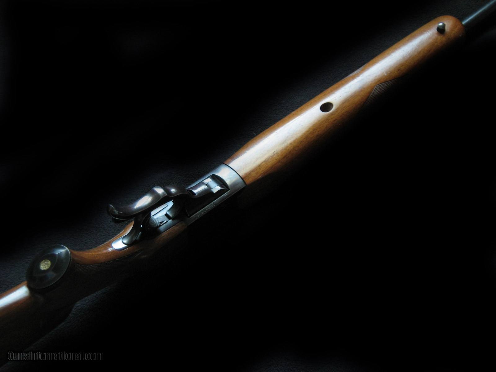 Description: Red pad rifle with decent wood, action has strong blue, spendy Canjar trigger installed. The medium weight barrel however has been ground to clear a scope, and the bore is starting to show signs of wear. So a good candidate for a couple more prairie dog sessions and then rebarrel. Comes with scope rings (not shown). SOLD |