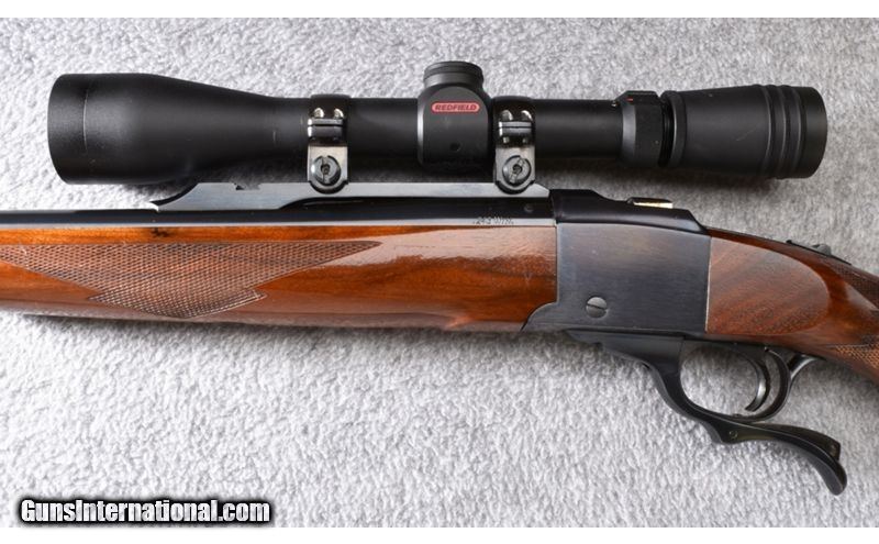 Description: This Ruger No. 1 was shipped from the factory in 1985 and remains in very good overall condition. Wood shows some signs of light use and handling. Barrel blue is very good and there is some light oxidation starting on receiver. This has the typical Farquharson lever and falling block action. Gun is complete with Redfield Revolution 4-12x40 scope. No box. Thirty five year old classic! .243 Winchester SOLD Metal Condition: Excellent Wood Condition: Very Good Bore Condition: Excellent Barrels: 22 Triggers: Factory Stock Dimensions: 12 3/4" LOP Fore End: Checkered Walnut Pistol Grip with Ruger Pistol Grip Cap - Checkered Walnut Alex Henry Forend Weight: 8 lb. Sights: Original Front Iron Sight - Redfield Revoluition 4-12x40 Scope Item Location: Wheeling |