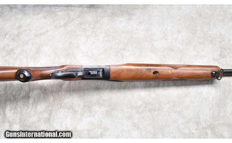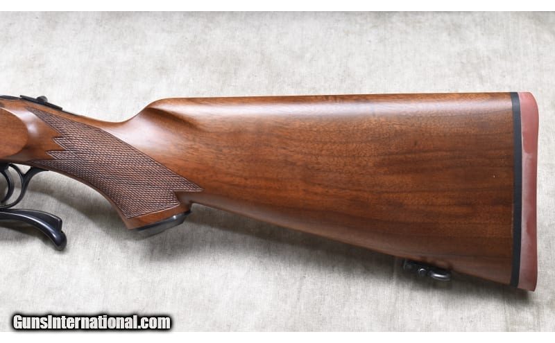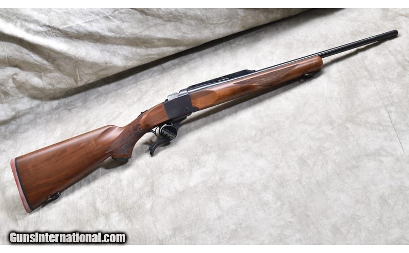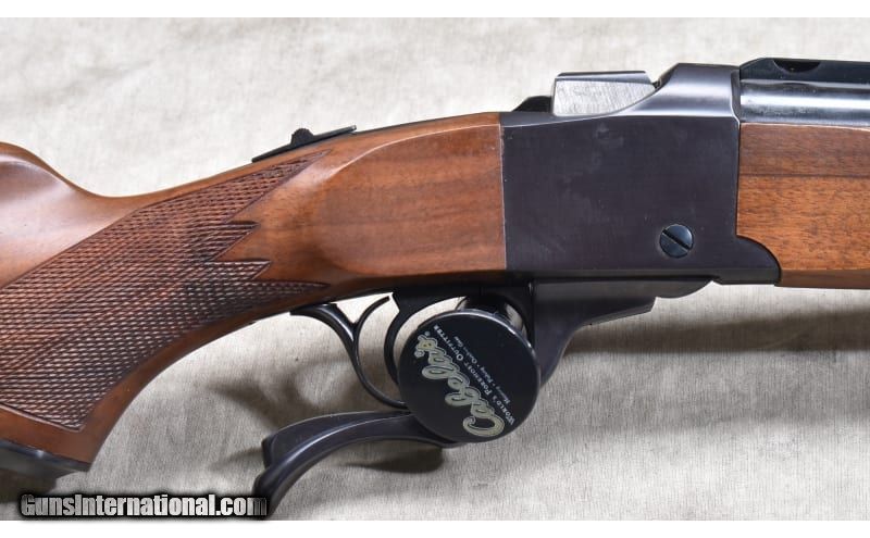Description: This No. 1 Carbine features very nice walnut stock with some figure. It is scope ready, chambered in .243 Win., and is light and short. This one is in excellent condition and may have been fired, it doesn't show and could pass for "as new in box." .243 Winchester SOLD Chambers: Single shot Metal Condition: Excellent. Wood Condition: Excellent. Bore Condition: Shiny and bright with good rifling. Barrels: 22-inch Triggers: Factory trigger. Stock Dimensions: 13-1/2 inch LOP. Fore End: Well-matched checkered walnut beavertail. Butt Pad: Rubber pad. Weight: 7 lb - 4 oz Sights: Scope ready. Item Location: Rogers |