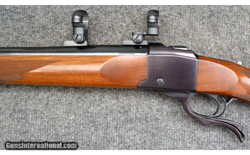 Description: For your consideration, a Ruger No. 1 chambered in .25-06 Remington. Sighting consists of 1" scope rings on Unertl type scope bases. This piece dates to 1993. .25-06 Remington SOLD Metal Condition: Excellent Wood Condition: Excellent Bore Condition: Excellent Barrels: 24 Triggers: Serrated Face Stock Dimensions: 13.5" LOP Fore End: Checkered Butt Pad: Rubber Weight: 8.75 lbs Sights: Scope Rings Item Location: Hamburg, PA |