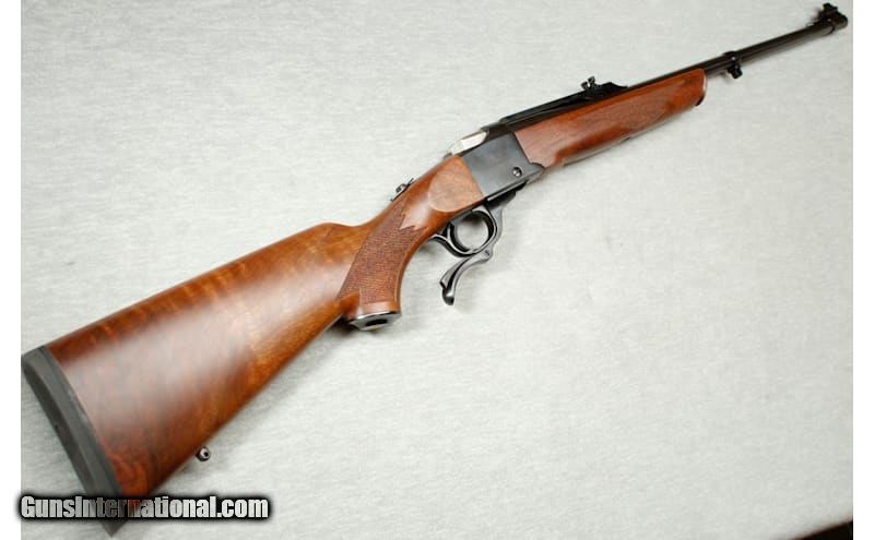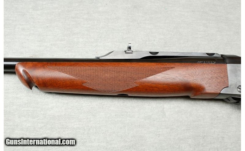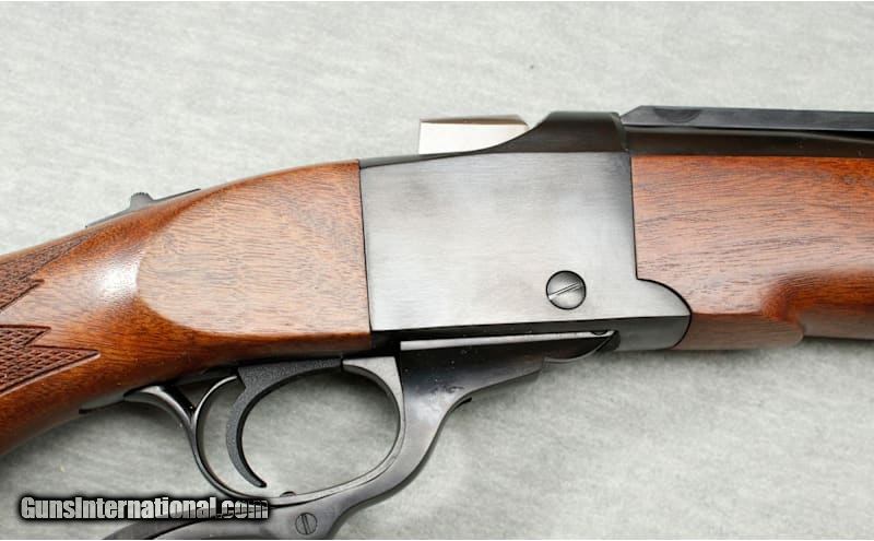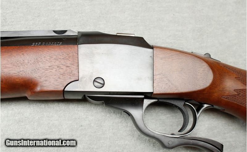 Description: RUGER NO.1-A LIGHT SPORTER SINGLE SHOT RIFLE. Bbl. 22". Ramp mounted front sight & folding leaf rear sight on quarter rib. Alexander Henry forearm & pistol grip walnut stock. Features include cut checkering, grip cap, swivel bases & black pad. UNATTACHED ACCESSORIES: original box containing instruction manual, warranty card, offer paper, sling swivels, Ruger rings & safety lock. CONDITION: as new w/ box. .257 Roberts SOLD Metal Condition: very good Wood Condition: very good Bore Condition: bright Barrels: 22" barrel Stock Dimensions: 14 Fore End: checkered wood Butt Pad: Ruger rubber Weight: 6 lb - 12 oz. Sights: factory sights Item Location: La Vista, NE |