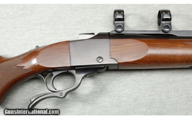 Description: Excellent condition, light finish wear, few small scratches. Ruger No. 1 hunting rifle with 26" barrel, blued finish, smooth action & crisp trigger and 1" scope rings installed. Checkered wood forend and stock with decorative grip cap, Ruger factory recoil pad and sling swivel mounts. .270 Winchester SOLD Chambers: Single shot Metal Condition: Excellent Bore Condition: Bright Barrels: 26 Triggers: Factory Stock Dimensions: 13 1/2" LOP Fore End: Checkered Butt Pad: Factory pad Sights: 1" Scope rings installed Item Location: La Vista, NE |