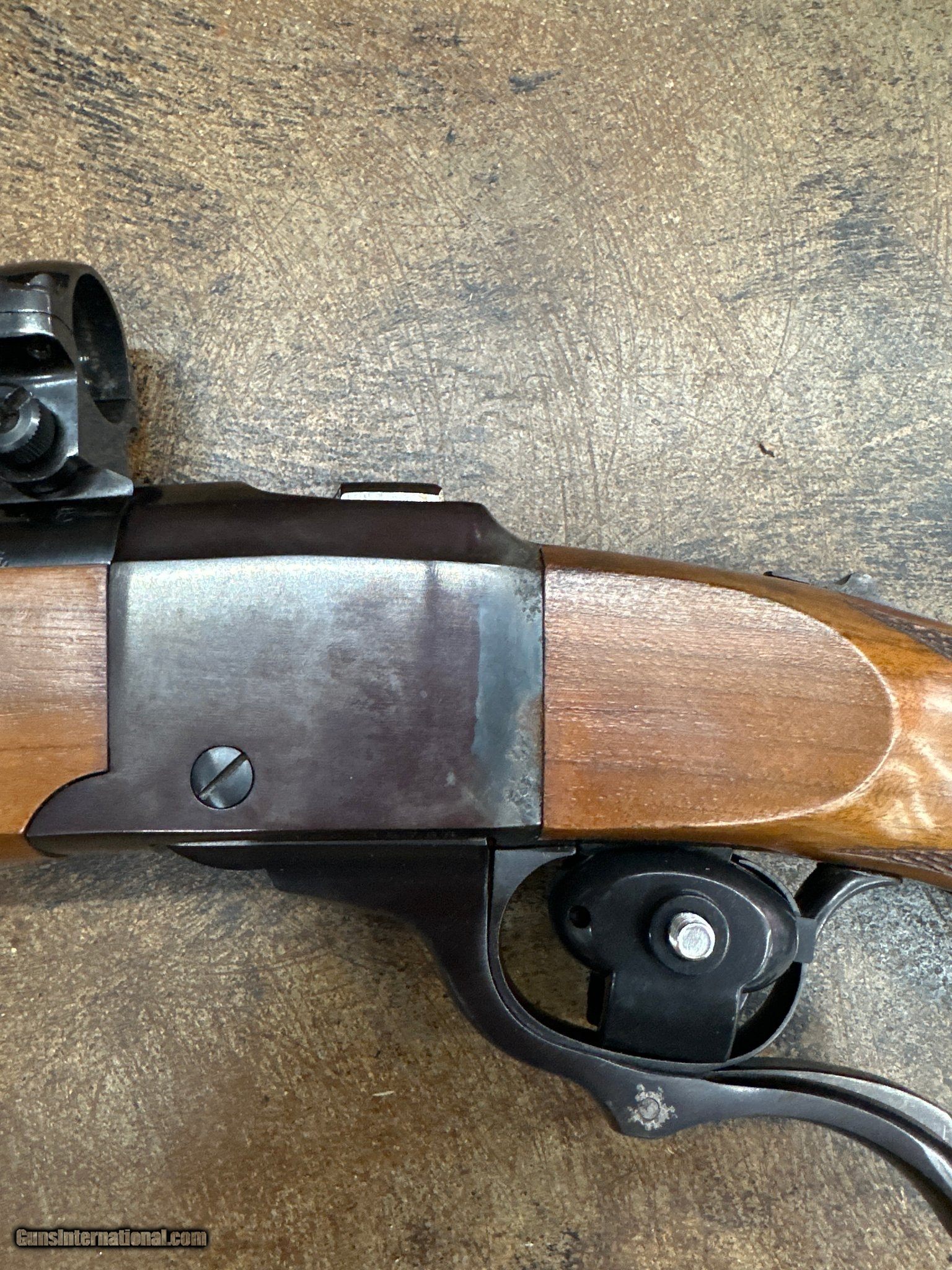 Description: Guns Listing ID: 486912 Scope mounted Single shot lever action Slight rust on receiver SOLD Manufacturer: RUGER Model: NO. 1 Condition: Used - Non-Certified Barrels: 26 Gauge Info: .30-06 SPRG Finish: wood, blued steel |