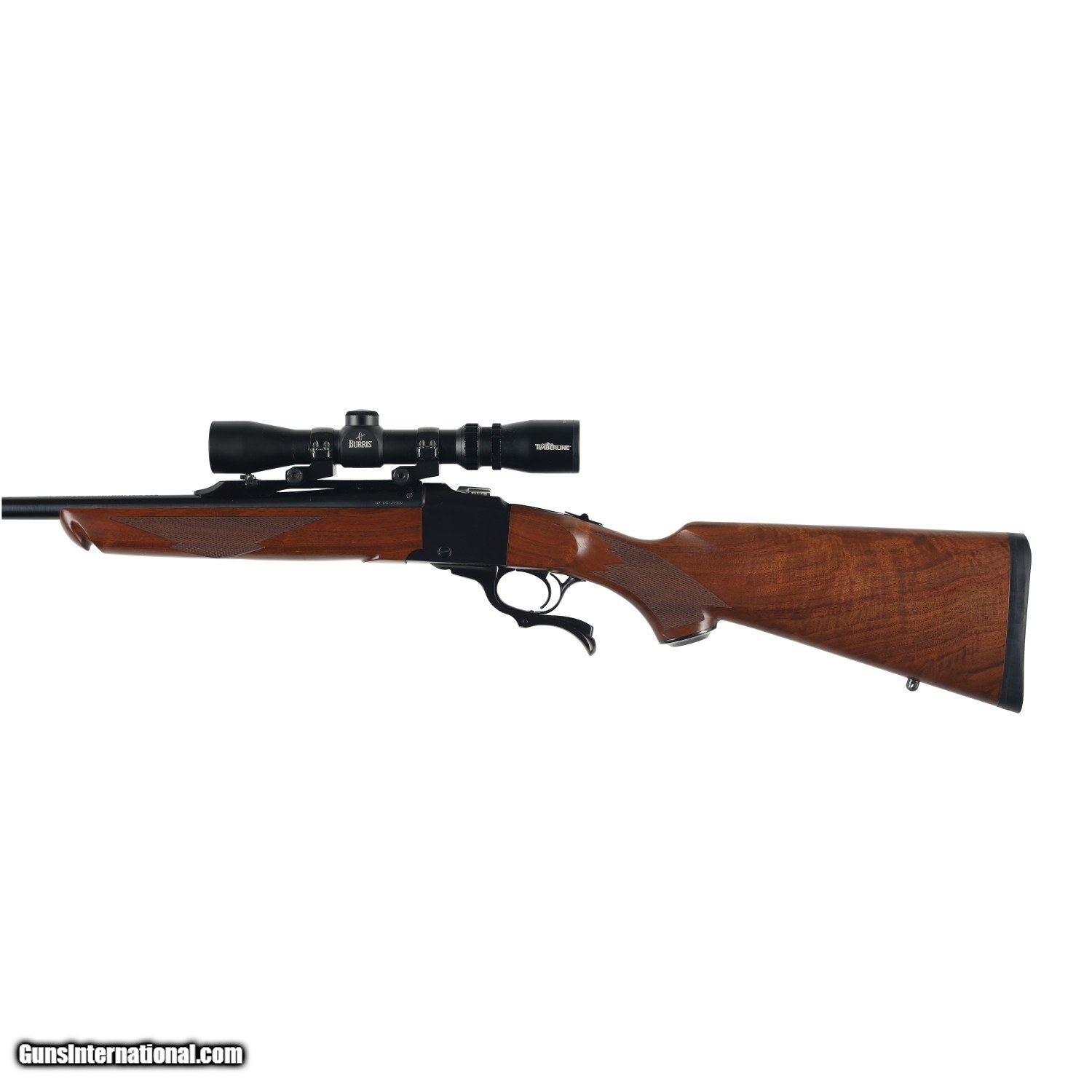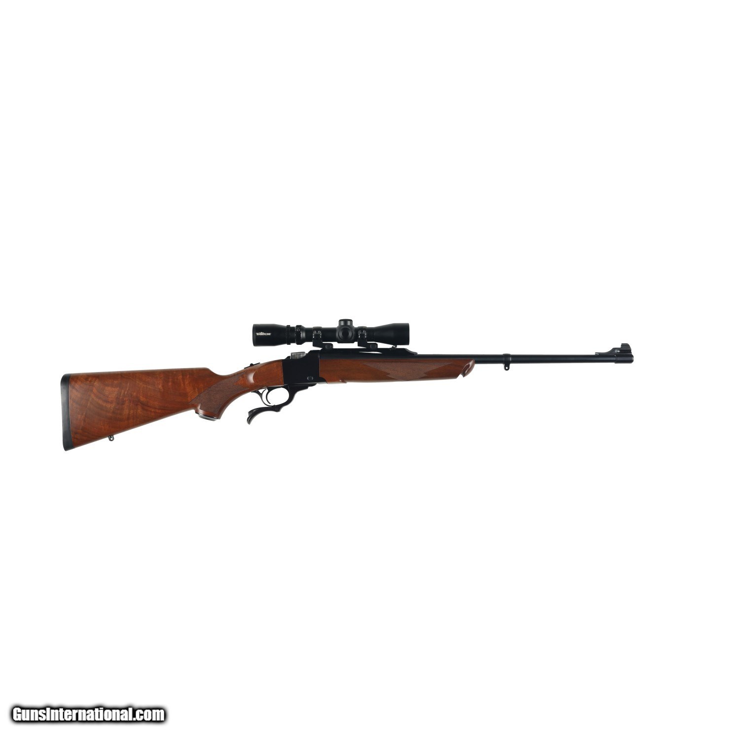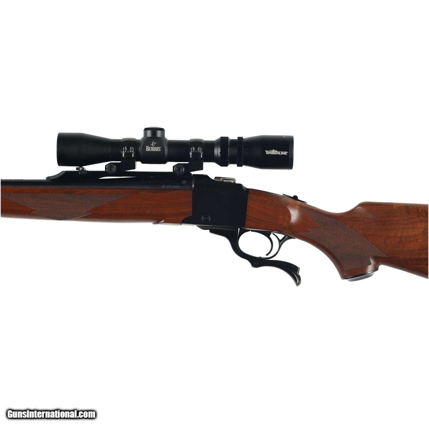 Description: The Ruger No.1 is a falling block, single shot rifle which can handle anything from the smallest varmint cartridge to the largest big game cartridges commonly used. This used example is in very good overall condition, with light wear and a small crack forming at the rear of the forend. Comes equipped with a Burris Timberline 3-9 scope. Manufactured in: USA Hand: Right Hand Action Finish: Blue Metal Finish: Original Barrel Length: 22" Barrel Condition: Very Good Stock Finish: Original Stock Condition: Very Good Type of Butt: Factory Grip: Pistol Forend: Checkered Manufacturer: Ruger Model: No. 1 Caliber Info: .30-06 Condition: Preowned Metal Condition: Very Good Action: Single Shot Triggers: Single Fore End: Checkered LOP: 13 5/8 Finish: Original Weight: 8.1 lbs Case: NONE Price: $1,600.00 Contact Seller |