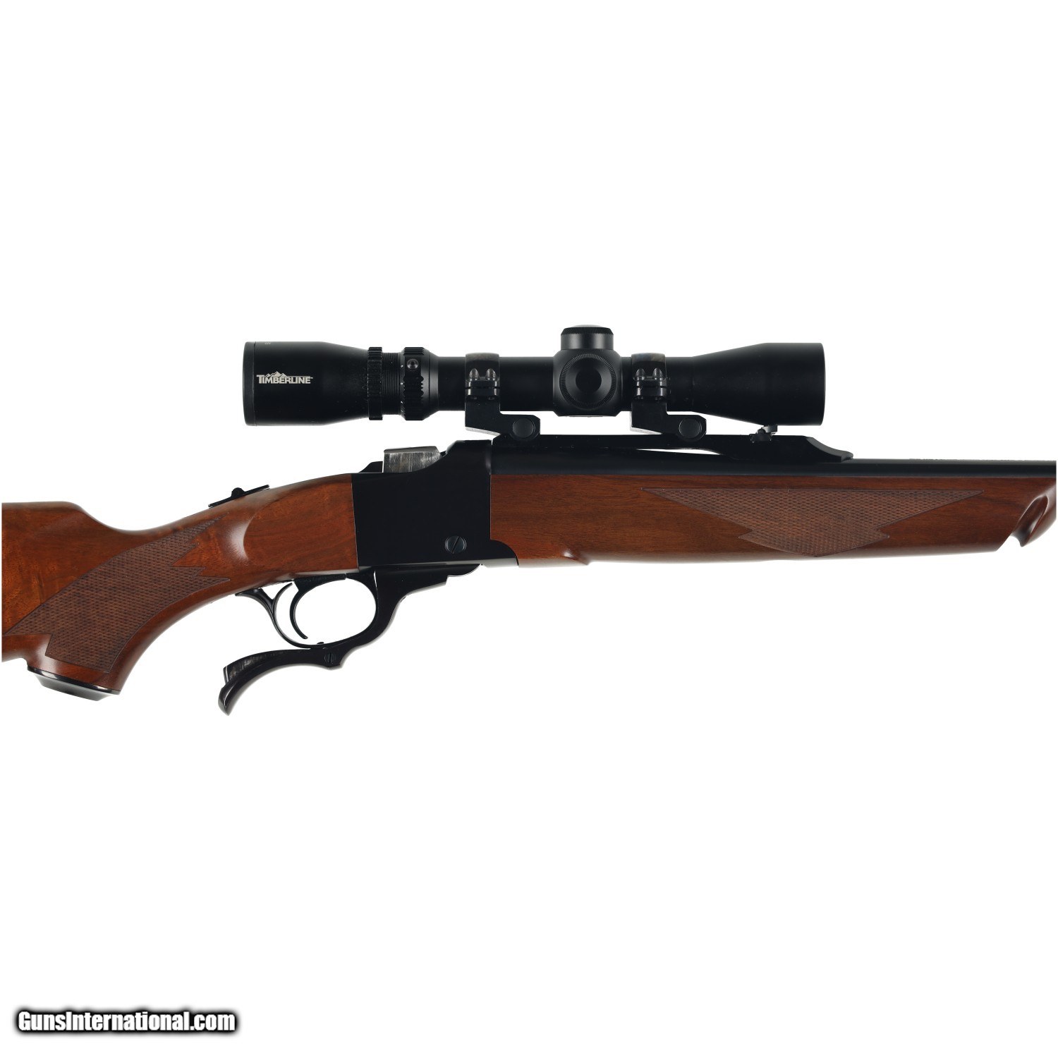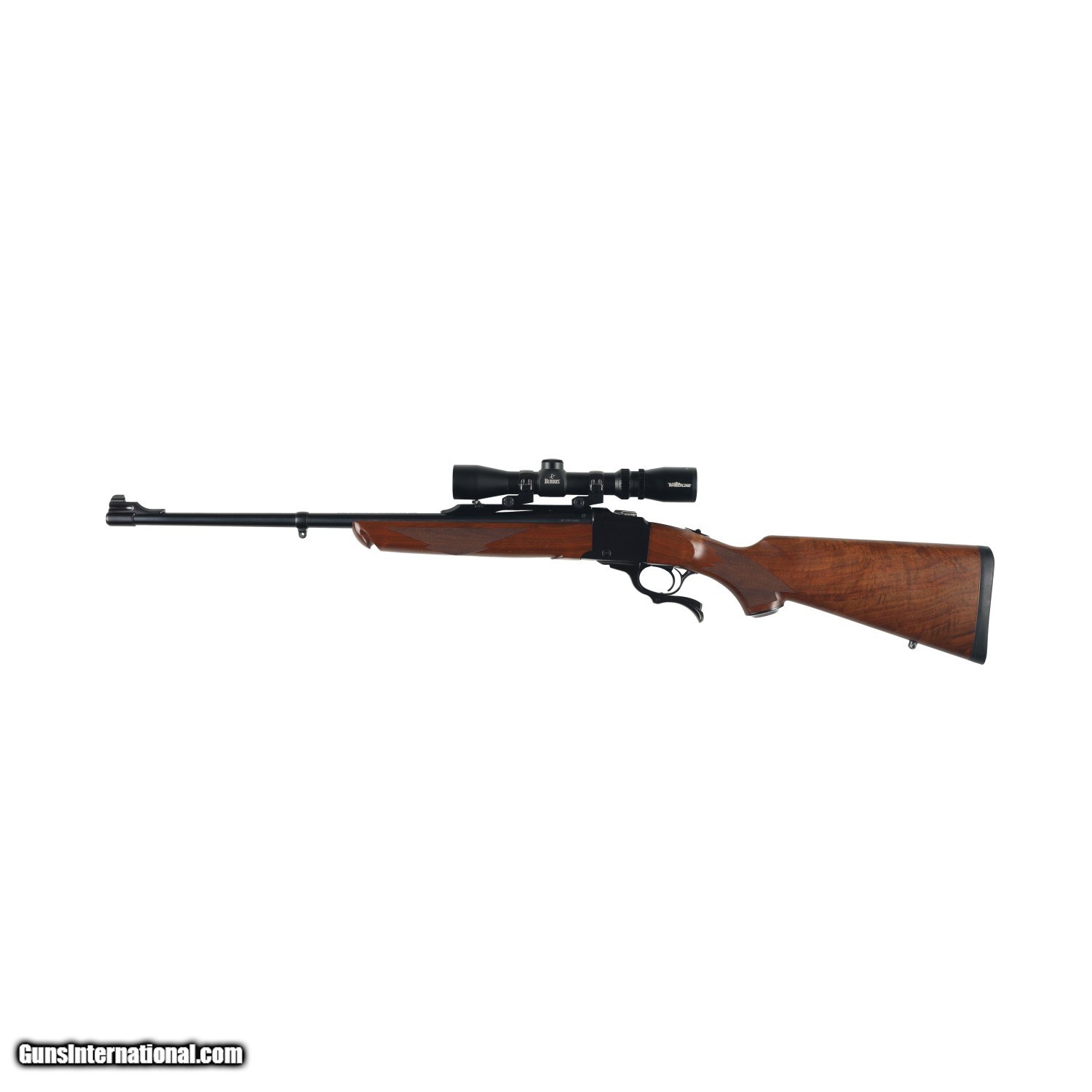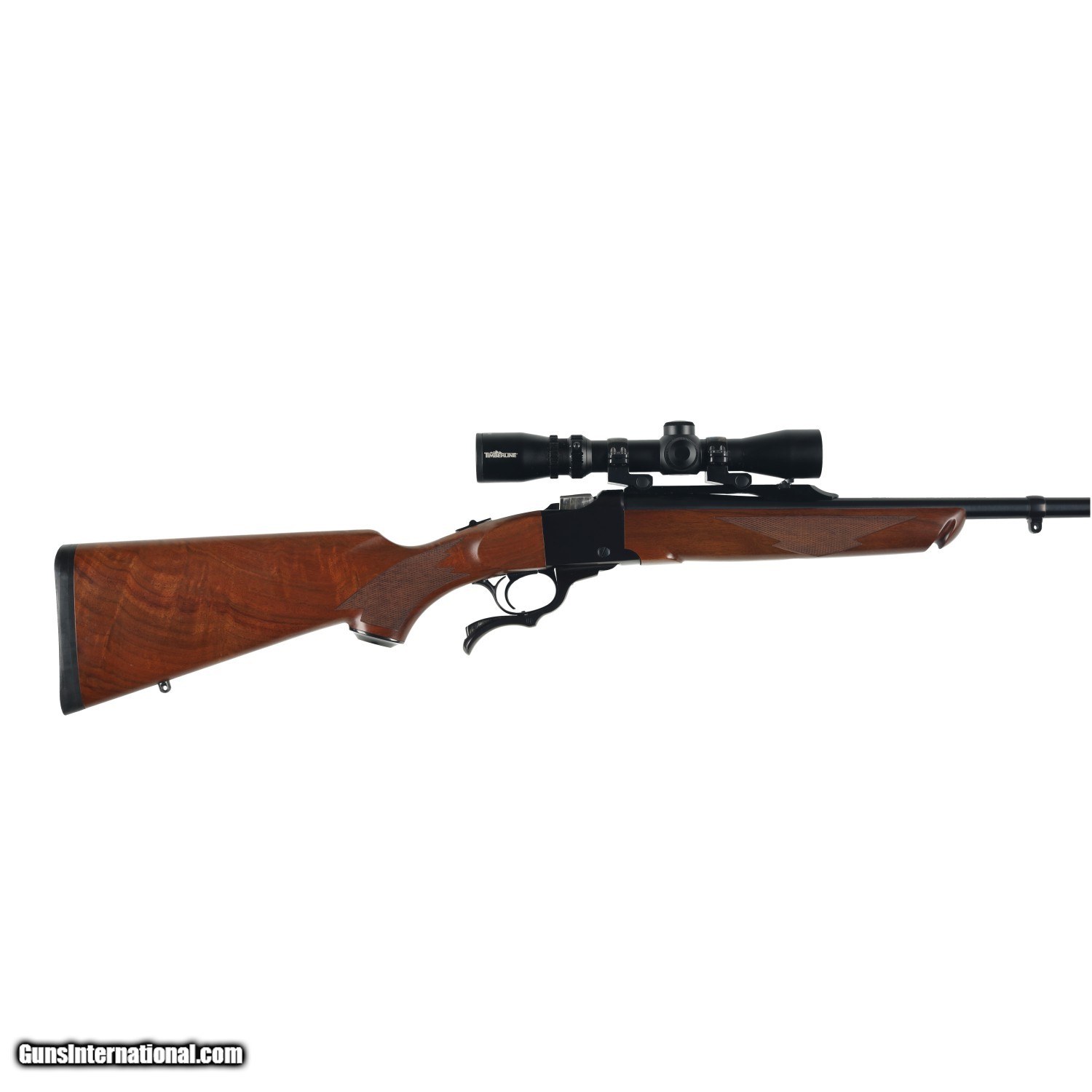 Description: The Ruger No.1 is a falling block, single shot rifle which can handle anything from the smallest varmint cartridge to the largest big game cartridges commonly used. This used example is in very good overall condition, with light wear and a small crack forming at the rear of the forend. Comes equipped with a Burris Timberline 3-9 scope. Manufactured in: USA Hand: Right Hand Action Finish: Blue Metal Finish: Original Barrel Length: 22" Barrel Condition: Very Good Stock Finish: Original Stock Condition: Very Good Type of Butt: Factory Grip: Pistol Forend: Checkered Manufacturer: Ruger Model: No. 1 Caliber Info: .30-06 Condition: Preowned Metal Condition: Very Good Action: Single Shot Triggers: Single Fore End: Checkered LOP: 13 5/8 Finish: Original Weight: 8.1 lbs Case: NONE Price: $1,600.00 Contact Seller |
