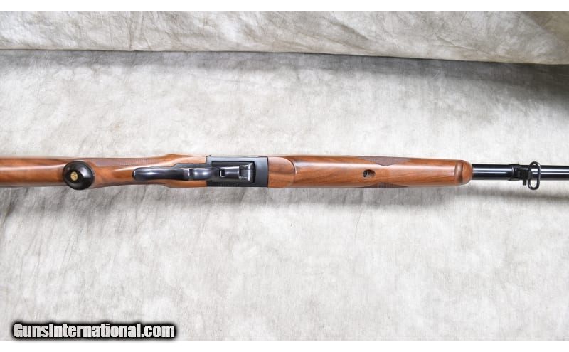 Description: This Ruger No. 1 carbine was manufactured in 1976 and features the Alex Henry grooved fore end, and overall length of 42-1/2 inches and a barrel length of 26 inches. It is hard to tell if the firearm is very lightly fired or unfired. .300 Winchester Magnum SOLD Chambers: Single shot. Metal Condition: Like New In The Box. Wood Condition: Like New In The Box. Bore Condition: Like New In The Box. Barrels: 26-inch Triggers: Factory trigger. Stock Dimensions: 13-5/8 inch LOP. Fore End: Alex Henry grooved fore end. Butt Pad: Rubber pad. Weight: 7 lb - 14 oz Sights: Brass bead and folding leaf 'iron' sights. Set up for scope with proprietary mount. Item Location: Rogers |