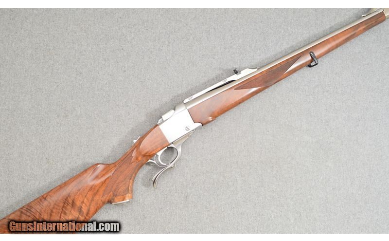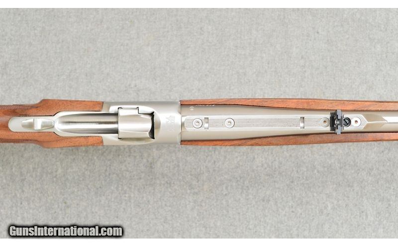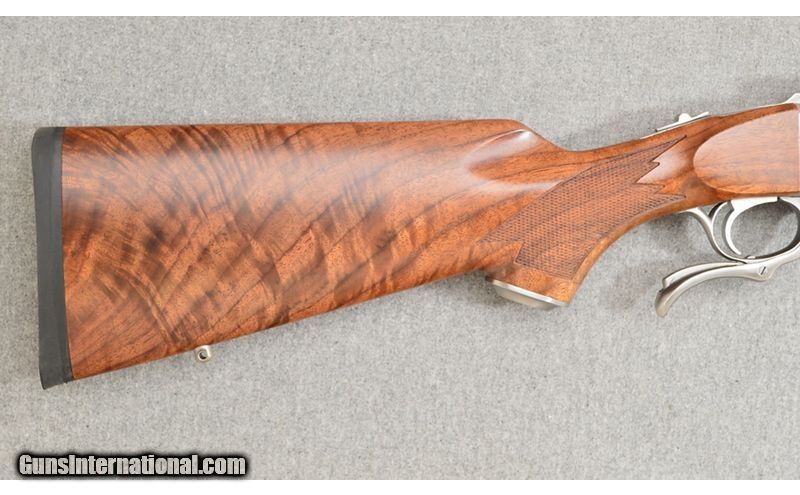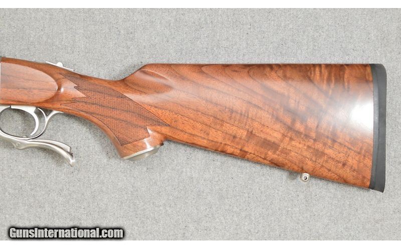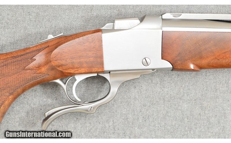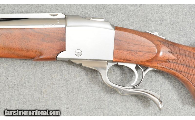 Description: For your consideration, a Ruger No. 1 rifle chambered in .308 Winchester. Checkered wrist and forearm, the furniture has some minor figuring to the wood grain. A full length Mannlicher type handguard spans the distance between receiver and muzzle. The barrel is topped with an abbreviated rib with scallop cuts for Ruger type scope rings. Only some minor marring at the juncture between the forend cap and forend reduces the wood and metal conditions from rating at excellent. Included is the box. .308 Winchester SOLD Metal Condition: Very Good Wood Condition: Very Good Bore Condition: Excellent Barrels: 20 Triggers: Serrated Stock Dimensions: 13.75" LOP Fore End: Mannlicher Butt Pad: Rubber Weight: 7 lbs Sights: Iron Sights Item Location: Hamburg, PA |