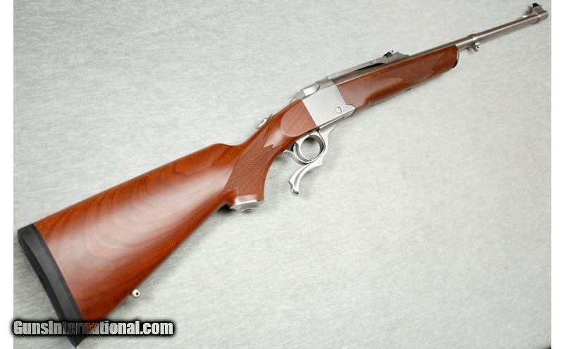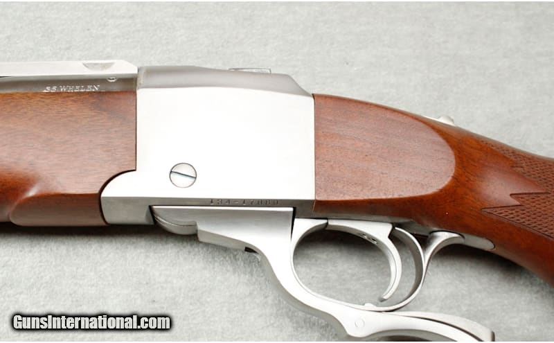 Description: RUGER K1-A SINGLE SHOT RIFLE. Cal. 35 Whelen. S# 134-17880. Bbl. 22". Ramp mounted bead front sight w/ folding leaf rear sight on quarter rib. Alexander Henry forearm & pistol grip walnut stock w/ swivel bases, grip cap & black pad. UNATTACHED ACCESSORIES: original box containing owner's manual, warranty card, sling swivels, Ruger rings & safety lock. CONDITION: as new w/ box. .35 Whelen SOLD Metal Condition: very good Wood Condition: very good Bore Condition: bright Barrels: 22" barrel Stock Dimensions: 14 Fore End: checkered wood Butt Pad: Ruger rubber Weight: 6 lb - 6 oz. Sights: factory sights Item Location: La Vista, NE |