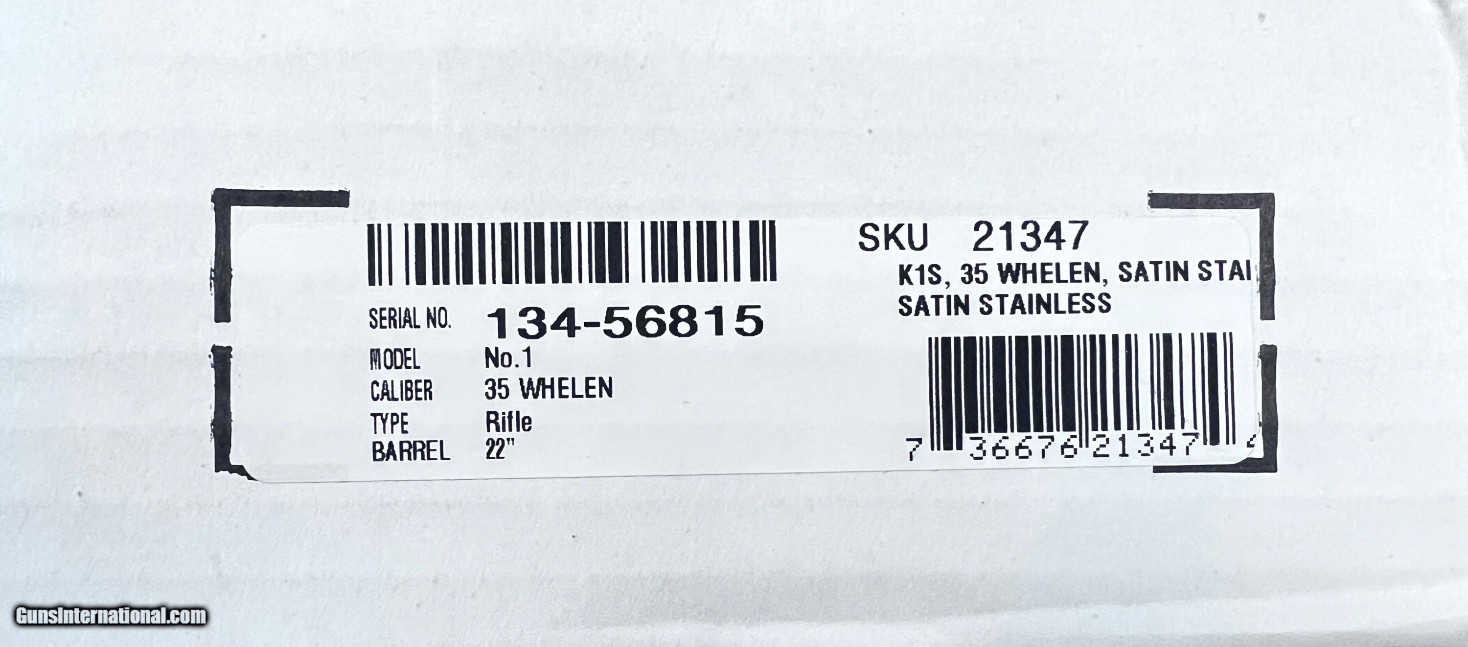 New Ruger No.1 stainless chambered in .35 Whelen 22 inch barrel