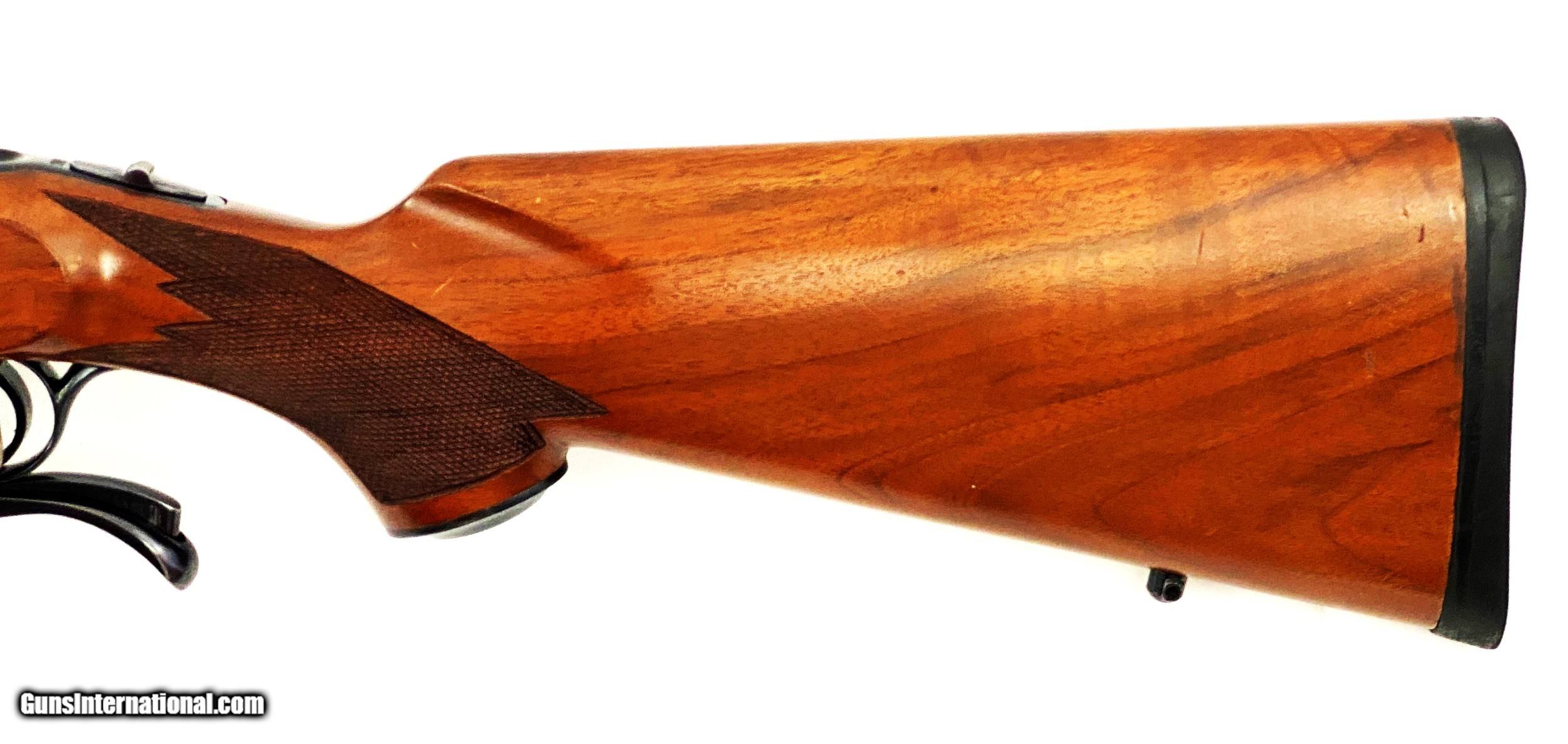 Description: For sale is a Ruger No. 1 chambered in 375 H&H Mag. This rifle was manufactured in 1979. It is not a "Safe Queen" and does have some use marks on it. Please review all pictures prior to clicking on the Buy Now button. That being said this is a beautifully rifle with very nice figure in the butt stock. The handling marks in the wood are purely cosmetic. The metal is in very good shape with only minor wear showing. (There is a Dog hair from my great Pyrenees on the right side just under the scope mount on the barrel that looks like a scratch but is not.) The edges of the metal show bluing wear at the muzzle and on the lever and on the stamping on the barrel. Lastly the center of the rear sight is missing the apature. I do have scope rings and they are included with the rifle they are 1" rings. Maine residents add 5.5% sales Tax Price reflects a Cash discount of 3.5% Check Money order or Credit cards are accepted (Credit or Debit Cards will Void Cash Discount) SOLD Manufacturer: Ruger Model: No. 1 Serial Number: 131-53483 Barrel Length: 24 Condition: Good Metal Condition: Good Wood Condition: Good some handeling Ding and Scratches Bore Condition: Very Good Action: Single Shot Falling Block Finish: Blued Sights: Iron sights with scope rings included Manufacture Date: 1979 Item Location: Buxton Maine |