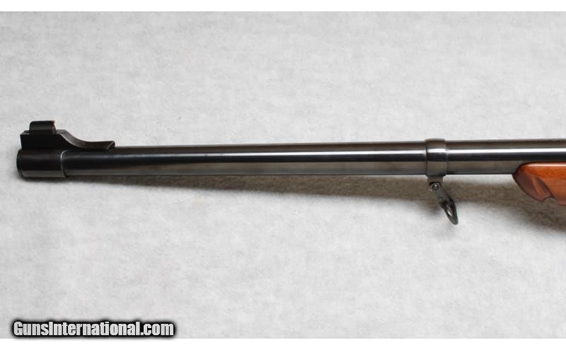 Description: Excellent condition, light wear and handling marks. Classic Ruger No. 1 rifle, 23" heavy barrel chambered for the powerful .375 H&H Magnum cartirdge. Polished blue finish, nicely configured wood with sharp checkering, sling swivels, and Ruger factory red recoil pad. Info from Ruger's - Sliding tang safety provides instant security, visibility and accessibility. Strong, simple, compact falling-block breech mechanism with artillery-style breechblock and under-lever is ideally suited for today's powerful cartridges. Robust, sturdy, sculptured receiver forms a rigid support for barrel, stock and sliding breech block. Ejector mechanism provides maximum leverage at the point where the ejector engages the cartridge case and can be adjusted to provide extraction only. Integral scope mounts, machined directly on the solid steel quarter rib, provide a stable mounting surface for included scope rings. Cold hammer-forged barrel results in ultra-precise rifling that provides exceptional accuracy and longevity. .375 H&H Magnum SOLD Metal Condition: Excellent Wood Condition: Excellent Bore Condition: Bright Barrels: 23 Triggers: Factory Stock Dimensions: 13 1/2" LOP Fore End: Checkered Butt Pad: Factory pad Item Location: La Vista, NE |