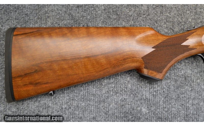 Description: For your consideration, a Ruger No. 1 chambered in .450/400 Nitro Express chambered in 3" chamber length .450/400 Nitro Express. Sighting consists of a white bead front, windage adjustable express V rear, and an abbreviated rib scalloped for Ruger factory scope rings. Excepting the polished breechblock, all metal is matte blued. This piece dates to 2008. .450/400 Nitro Express SOLD Chambers: 3 Metal Condition: Excellent Wood Condition: Excellent Bore Condition: Excellent Barrels: 24 Triggers: Serrated Stock Dimensions: 13.5" LOP Fore End: Checkered Butt Pad: Rubber Weight: 8 LBS Sights: Iron Sights and Scope Base Item Location: Hamburg, PA |