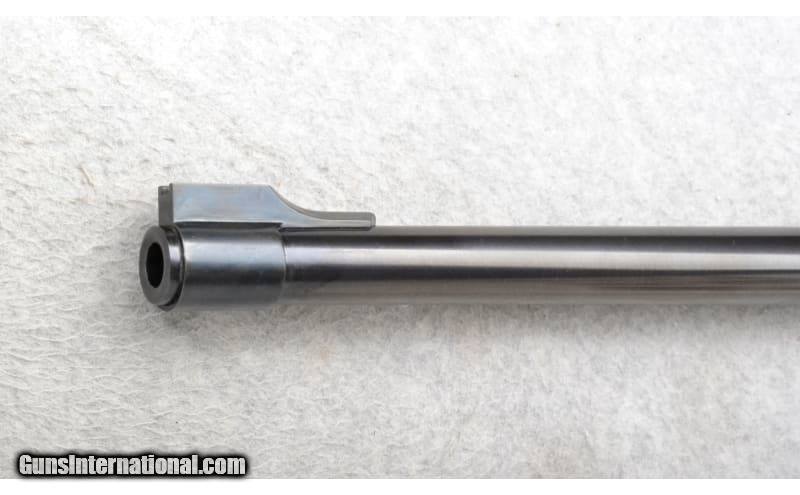 Description: This Ruger No.1 is a single shot falling block action with curved Faquharson lever action rifle in .458 Win. Mag. Cal. It has a 24 inch barrel. The blade on the front sight is missing. It has a folding adjustable notch middle sight and a quarter rib with integral scope mount base. The butt stock is a checkered grip hardwood pistol grip with a black cap. The forearm is a checkered grip hardwood. .458 Winchester Magnum SOLD Chambers: Single shot. Metal Condition: Excellent. Wood Condition: Excellent. A couple of minor handling marks. Bore Condition: Excellent. Barrels: 24 inch. Stock Dimensions: LOP 13.5 inches. Fore End: Checkered grip hardwood. Butt Pad: Ruger red pad. Weight: 9 Lb. 4 Oz. Sights: Has a blade base but the blade is missing. Folding adjustable middle. Quarter rib with integral scope base. Item Location: Richfield, WI |