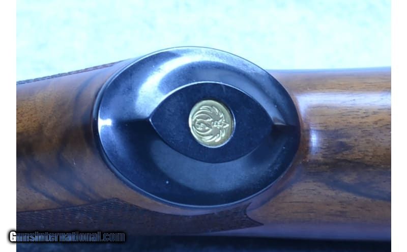 Description: This is a very nice commemorative Number 1, recognizing the 50th Anniversary of the Sturm, Ruger & Co. a lever action falling block rifle in .45-70 Govt. The butt stock is a checkered grip hardwood pistol grip with a black steel cap. The forearm is a checkered grip hardwood. It has a 22-inch barrel. A raised blade front sight and a folding adjustable notch middle sight. It has a cantilever scope mount base. This one features a walnut stock with nice grain and figure, and with Alex Henry fore end. The metal is tastefully engraved and filled with gold. This one could pass for new and appears unfired. .45-70 Government SOLD Chambers: Single shot 45-70 Govt. Metal Condition: Excellent Wood Condition: Excellent Bore Condition: Shiny and bright with good rifling. Barrels: 22" barrel w/ 13 1/2" LOP Triggers: Factory Trigger Stock Dimensions: 13 1/2" LOP Fore End: Alex Henry fore end Butt Pad: Ruger soft rubber pad. Weight: 7 lb 2 oz Sights: A raised blade front sight and a folding adjustable notch middle sight. It has a cantilever scope mount base. Chokes: N/A Item Location: Grandville, MI |
