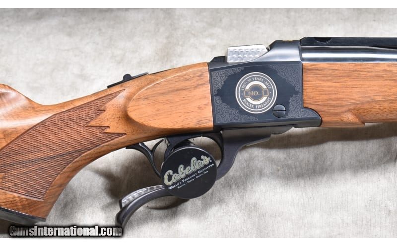 Description: The 50th Anniversary Model No. 1 features exceptional wood, excellent metal, jeweled falling block and lever release. It appears unfired and has the box and factory accessories. .308 Winchester SOLD Chambers: Single Shot Metal Condition: Excellent. Wood Condition: Excellent. Bore Condition: Shiny and bright. Barrels: 22-inch Triggers: Factory trigger. Stock Dimensions: 14-inch Fore End: Alex Henry grooved fore end. Butt Pad: Rubber pad. Weight: 6 lb - 6 oz. Sights: Gold bead and folding leaf. Set up for scope. Item Location: Rogers |