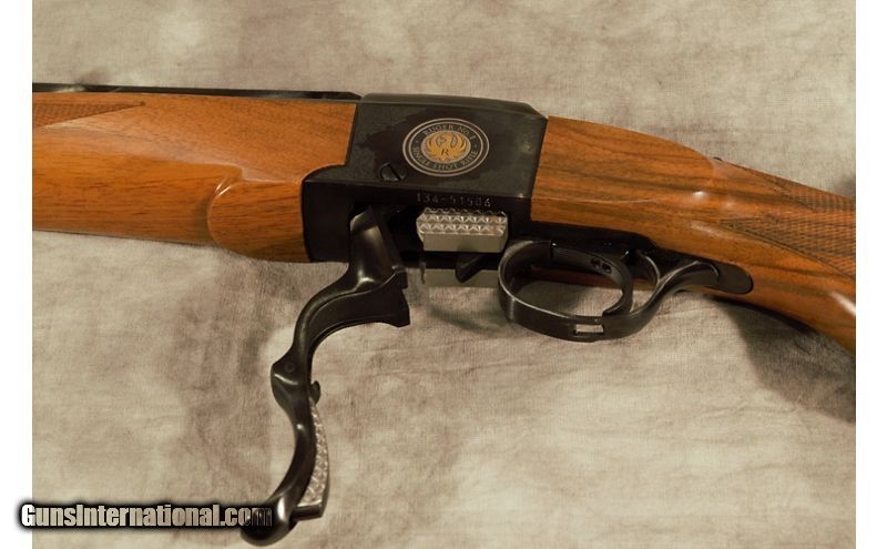 Description: This rifle was made to celebrate Rugers 50th year of production of the Ruger No.1 .308 Winchester SOLD Chambers: 308 win Metal Condition: Excellent Wood Condition: Excellent Bore Condition: Excellent Barrels: 22 Butt Pad: Red rubber Pad Weight: 7lbs 7oz Sights: Ruger Rings Item Location: Chesterfield, MI |