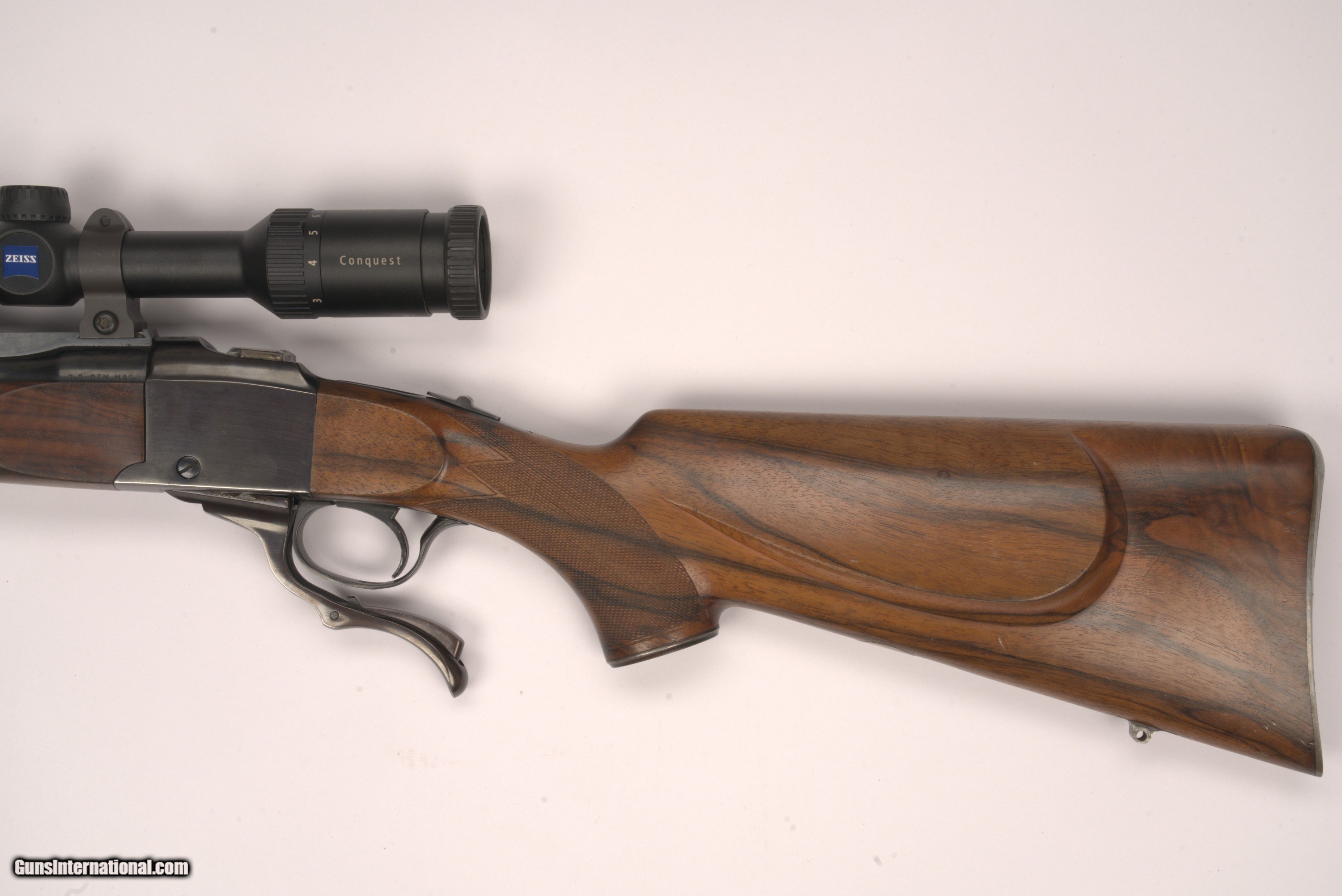 Description: -Manufacturer: Ruger -Model: No. 1 -Serial Number: 130-43278 -USED -Gauge/Caliber: 6.5 Rem Mag -Barrel Length: 23" -Hand: Right Hand -Length of Pull: 13.5" -Trigger Type: Single -Stock Type: Pistol Grip -Receiver Finish: Blued -Weight: 8lbs 8oz with scope -Country of Origin: USA -Action: Falling Block Single Action -Stock/Forend Finish Originality: Original -Receiver Finish Originality: Original -Barrel Finish Originality: Original -Bore Condition: Good -Items the Firearm comes with: Zeiss Conquest 3-9x40 MC and Tally Rings -Skeleton butt plate checkered within, skeleton grip cap checkered within, custom quarter rib (one standing, one folding sight), custom barrel band front sight, rust blued adds a lot more value than a standard blued Ruger No. 1. Jack Haugh did all the work who is very renowned. -Current Damages Explained: Moderate scratching on LH & RH sides of the stock more so located on LH side below the comb. All scratches are light to moderate with no major dings or dents. Forend is very clean. -Barrel Damages: Moderate scratching location on the middle portion of the barrel wrapping closer to the front back. -Dents or Deep Gouges: Nothing deep other than very minor shallow impressions below the cheek pad and one on the LH side of the stock below comb. -Rust or Corrosion: NONE -Firearm Condition: Good: In safe working condition, minor wear on working surfaces, no broken parts, may have minor fading on some metal surfaces, may have minor corrosion, or may have minor pitting, may have minor scratches or wear on stock/forend. All cosmetic and nothing that will interfere with proper functioning. This is a USED GUN and the actual photos of the gun you will receive. Please feel free to contact us if you would like to make an offer on this gun. Not the model you are looking for? Give us a call or email today and we will be happy to help find the right gun for you! If you contact us directly, we offer a 3% Cash or Check Discount, do not charge shipping on orders over $3,000, and also do not charge out of state taxes. There will be a $40 shipping charge for any firearms under $3,000. Rifle Caliber: 6.5mm Remington Magnum Manufacturer: Ruger Model: No. 1 Serial Number: 130-43278 Barrel Length: 23 Condition: USED Price: $3,099.00 Buy Now Contact Seller |
