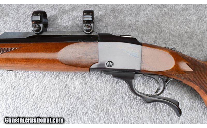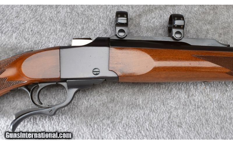 Description: This older Ruger has a wonderfully figured walnut stock and remains in overall excellent condition. Wood may show a handling mark or two but remains excellent. Blue and bore are also excellent. No box. 6MM SOLD Metal Condition: Excellent Wood Condition: Excellent Bore Condition: Excellent Barrels: 26 Triggers: Factory Stock Dimensions: 13 5/8" LOP Fore End: Checkered Walnut Pistol Gip with Black Ruger Pistol Grip Cap - Checkered Walnut Forend Weight: 8.5 lbs. Sights: Quarter Rib Integral Scope Mount with Scope Rings Attached Item Location: Wheeling |