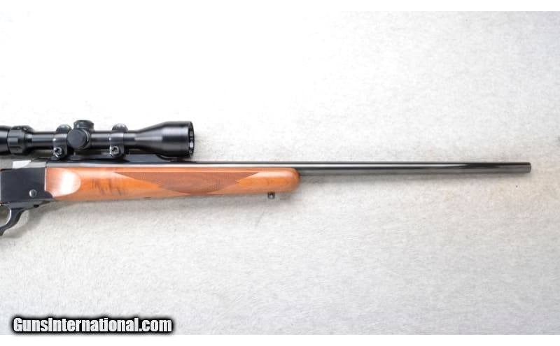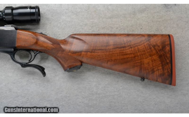 Description: This Ruger Model No.1 is a single shot falling block action with a Farquharson lever rifle in 6mm Rem. Cal. It has a 26 inch barrel. It is outfitted with a Bushnell High Contrast Scope. No iron sights. The butt stock is a checkered grip hardwood pistol grip with a black cap. The forearm is a checkered grip hardwood. 6mm Remington SOLD Chambers: Single shot. Metal Condition: Excellent. Wood Condition: Excellent. Bore Condition: Excellent. Barrels: 26 inch. Stock Dimensions: LOP 13 1/2 inches. Fore End: Checkered grip hardwood. Butt Pad: Ruger red pad. Weight: 9 lb. 0 oz. Sights: Bushnell 3-9 Scope. No iron sights. Item Location: Richfield, WI |