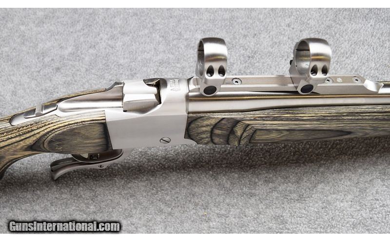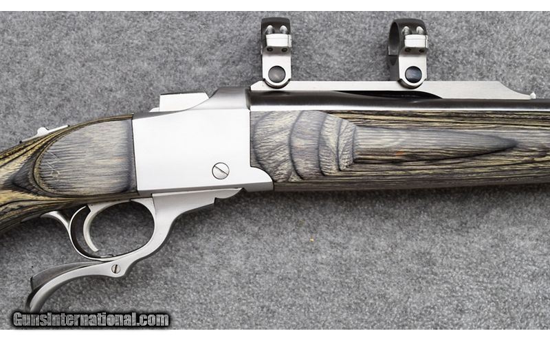 Description: This Ruger No. 1 was manufactured in 2001 and remains in excellent overall condition showing only minor handling and use marks in the wood. Laminate grey and black wood with stainless barrel and receiver. Shooting Times Westerner caliber makes this a desirable gun! 7mm STW SOLD Metal Condition: Excellent Wood Condition: Very Good Bore Condition: Excellent Barrels: 26 Triggers: 4 1/2 LB Trigger Pull Stock Dimensions: 13 1/2" LOP Fore End: Uncheckered Grey & Black Laminate Pistol Grip - Uncheckered Grey & Black Laminate Forend Butt Pad: Black Rubber Ruger Butt Pad Weight: 8.5 lbs. Sights: None - Ruger Rings Attached Item Location: Wheeling |