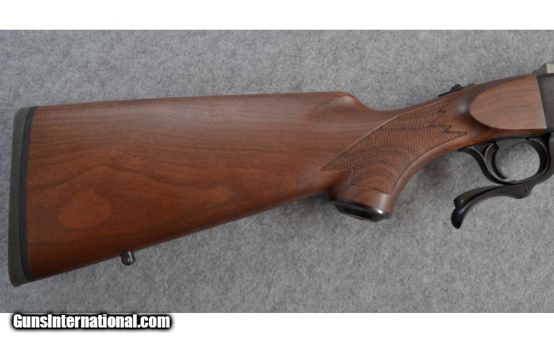 Description: Rifle is new from Ruger and being sold as a factory blemish model. Includes factory box, scope mounts/rings, and paperwork. SOLD Manufacturer: S/N 134-2711 Caliber Info: 7mm Remington Magnum Metal Condition: Very good condition. Wood Condition: Very good condition. Bore Condition: Very good, bright and shiney, good rifling. Barrels: 26 Inches. Triggers: LOP - 13 3/4 Inches Stock: Figured, checkered walnut. Fore End: Figured checkered walnut. Butt Pad: Ruger rubber recoil pad. Weight: 8 Lbs 0 Oz Sights: No sights, but includes scope bases and rings. Item Location: Lone Tree, CO |