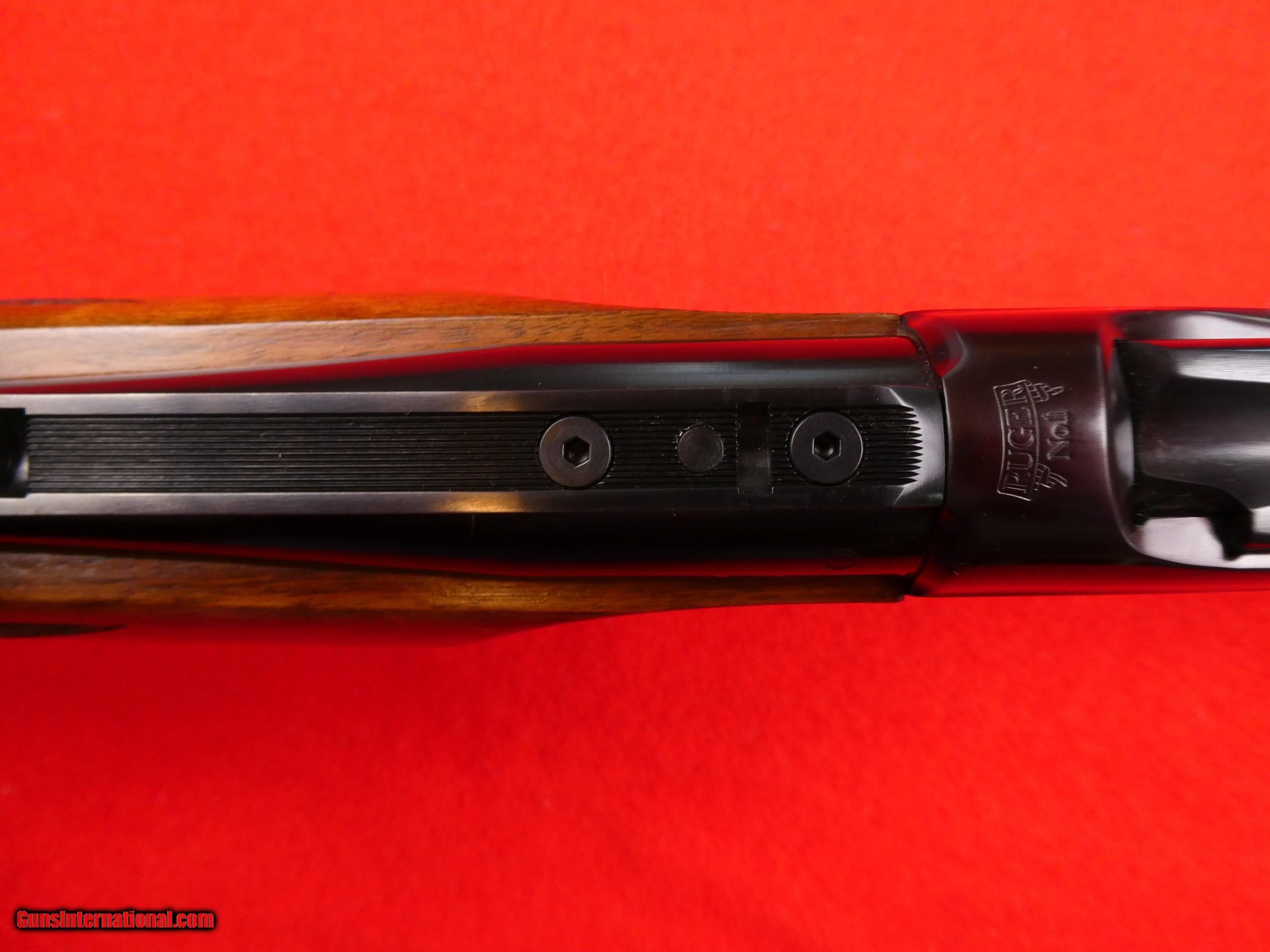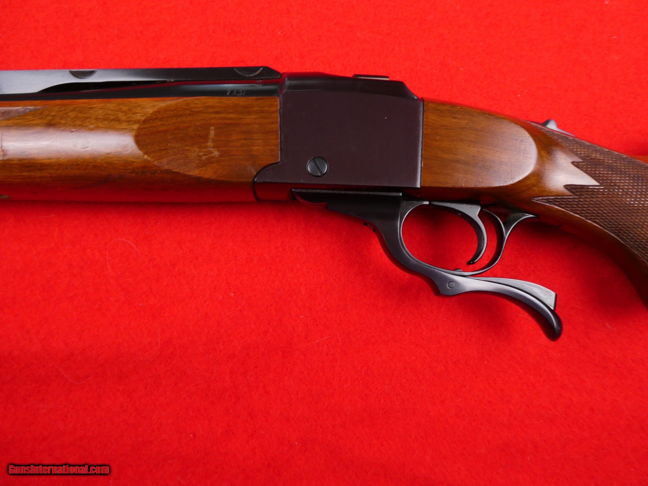 Description: Ruger No. 1 chambered in 7x57 ser# 132-12250 mfg. 1980. Rifle has 22" barrel 13 1/4" LOP.Sling swivels. Quarter rib with integral scope bases. Bluing is excellent, checkered walnut stock has beautiful wood with very minnor handling marks. Very desireable and scarce No.1 in 7x57.Excellent condition. Layaway Available SOLD |